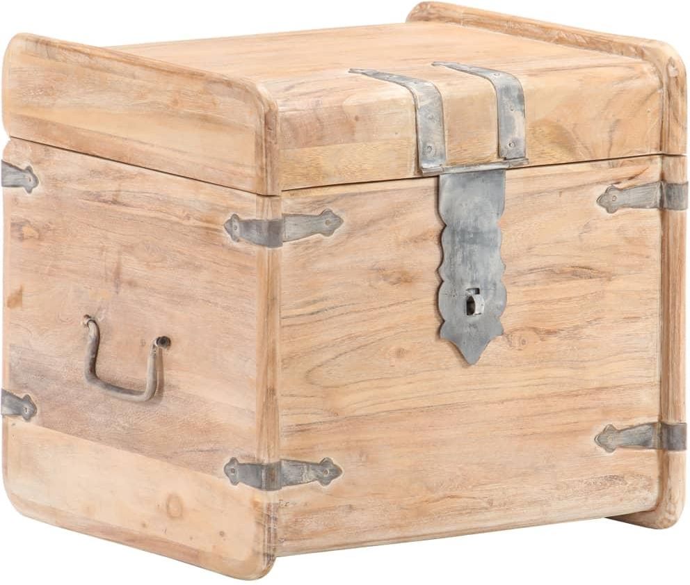 Drewniana skrzynia wniesie prosty wygląd do wystroju Twojego domu i zapewni dużo miejsca do przechowywania przedmiotów. Skrzynię wykonano z litego drewna akacjowego, dzięki czemu jest stabilna i wytrzymała. Ma zamknięcie z przodu oraz dwa uchwyty z boku do podnoszenia. Ten schowek ze stabilnym, płaskim wierzchem może posłużyć również jako stolik nocny. Kunszt wykonania i piękne słoje drewna sprawiają, że każdy mebel jest wyjątkowy i nieco inny od pozostałych. Ważna uwaga: kolory i usłojenie poszczególnych mebli mogą się różnić, dzięki czemu każdy jest unikatowy; wysyłka odbywa się losowo. Materiał: lite drewno akacjowe wykończone na biało, żelazo Wymiary: 40 x 40 x 40 cm (szer. x gł. x wys.) Możliwość zamknięcia Produkt nie wymaga składania
