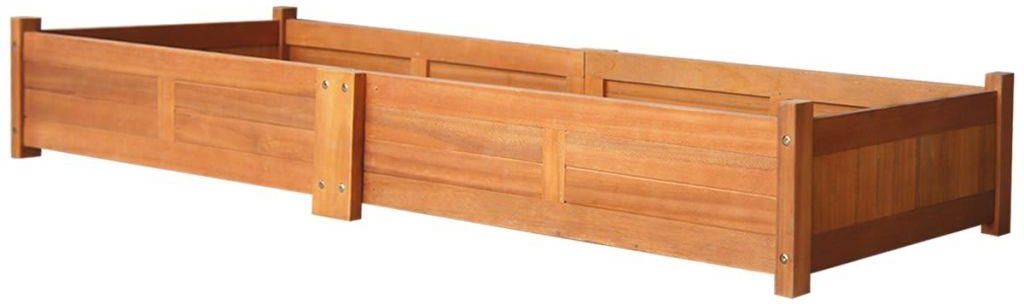 Ta podwyższona, drewniana donica ogrodowa jest wyjątkowo wytrzymała oraz pięknie wykonana. Jest wystarczająco głęboka oraz szeroka, aby zmieścić dużo ziemi i zapewnić sporo przestrzeni dla twoich roślin, warzyw, ziół i kwiatów. Dzięki prostej, prostokątnej formie donica będzie stylowym dodatkiem do balkonu, tarasu lub patio. Zrobiona z wysokiej jakości drewna akacjowego skrzynia jest bardzo mocna i wytrzymała. Olejowe wykończenie nadaje jej ciepły, rustykalny kolor. Spód skrzyni jest zbudowany z listew, które utrzymują ziemię w środku i pozwalają na odpływ nadmiaru wody. Montaż jest prosty. Kolor: brązowy Materiał: drewno akacjowe z naturalnym, olejowym wykończeniem Wymiary: 200 x 50 x 25 cm (dł. x szer. x wys.) Łatwy montaż