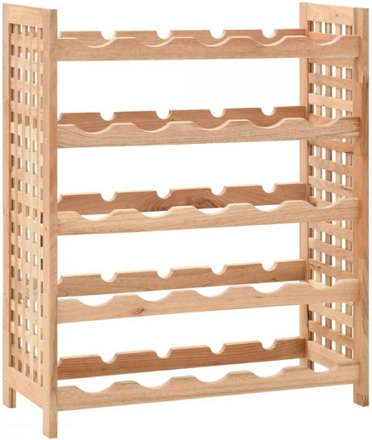 This 5-tier wine rack, made of solid walnut wood, will bring a touch of natural style to your home and provides an ideal storage solution for your wine bottles. The wooden wine storage rack has five shelves and can hold up to 25 wine bottles. Its side planks are formed by the beautiful frame that keeps the wine ventilated but also gives the wine rack an elegant look. The compact, stylish bottle holder will suit your interior decor perfectly. The wine rack is easy to assemble. Note: Wood is a natural product so colors may vary from batch to batch; delivery is random. Material: Solid walnut wood Dimensions: 24.8" x 9.8" x 28.7" (L x W x H) Can hold up to 25 wine bottles WARNING: In order to prevent overturning, this product must be used with the wall attachment device provided California Proposition 65 Warning: This product can expose you to chemicals including wood dust, which is known to the State of California to cause cancer. For more information go to www.P65Warnings.ca.gov. Legal Documents: More details about preventing your furniture from tipping over can be found here