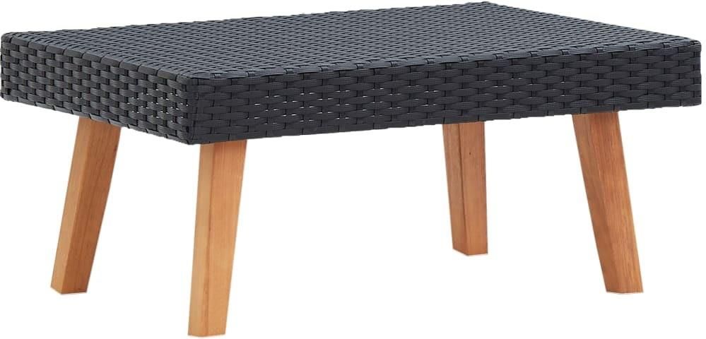 Ten stolik kawowy na drewnianych nogach jest idealny do dekoracji patio, ogrodu, przestrzeni przy basenie lub innych miejsc na zewnątrz. Stolik wykonano z trwałego rattanu PE oraz malowanej proszkowo stali, dzięki czemu jest mocny, wytrzymały i odporny na czynniki atmosferyczne. Za sprawą przeznaczonego na każdą pogodę rattanu PE mebel jest łatwy w czyszczeniu, solidny i odpowiedni do codziennego użytkowania. Solidny blat sprawdzi się idealnie do postawienia jedzenia i napojów w zasięgu ręki. Ponadto dzięki lekkiej i modułowej konstrukcji mebla możesz z łatwością go przestawiać. Uwaga: zalecamy przykrycie stolika kawowego na czas deszczu, śniegu i mrozu. Kolor: czarny Materiał: rattan PE, stal malowana proszkowo, drewno eukaliptusowe stylizowane na drewno tekowe Wymiary: 70 x 50 x 33 cm (szer. x gł. x wys.) Wymagany montaż: tak