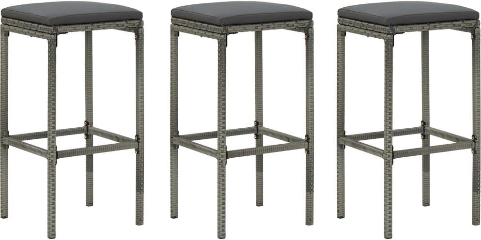 vidaXL Stołki barowe z poduszkami, 3 szt., szare, polirattan Gdynia