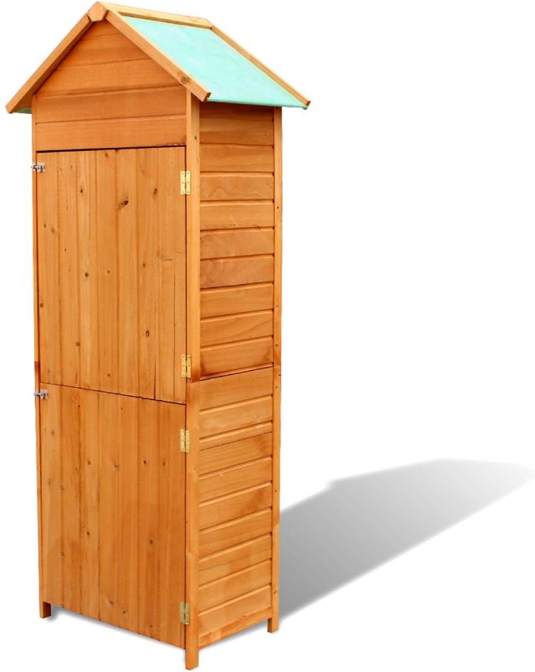 Drewniana szafka o kompaktowej formie i eleganckim wyglądzie będzie pasować do dowolnego otoczenia. Wysokiej jakości mebel zapewnia mnóstwo miejsca do przechowywania narzędzi i sprzętu. Dzięki solidnej drewnianej ramie szafka jest łatwa w czyszczeniu, wytrzymała oraz sprawdzi się do codziennego użytku. Dwie wbudowane półki pozwalają utrzymać porządek we wnętrzu. Wodoszczelne zadaszenie poliestrowe oraz wykończenie farbą wodoodporną zabezpieczą Twoje rzeczy przed wilgocią. Materiał: drewno wykończone wodoodporną farbą, sklejka Wymiary: 42,5 x 64 x 190 cm (szer. x gł. x wys.) Nieprzepuszczający wody dach Maks. obciążenie poziomów (od góry do dołu): 5 kg, 5 kg, 25 kg