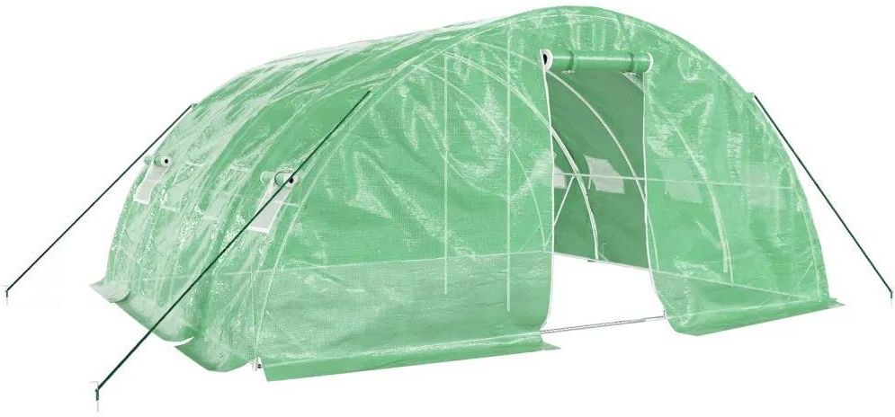 Przestronna szklarnia pomieści znaczną ilość owoców, warzyw i roślin. Sprawdzi się świetnie, by ochronić Twoje uprawy przed niekorzystnymi warunkami pogodowymi. Trwała powłoka PE: polietylen (PE) to najczęściej stosowany rodzaj tworzywa sztucznego. Jest on odporny na promieniowanie UV, warunki atmosferyczne, odporny na rozdarcie, lekki i łatwy w utrzymaniu. Chroni również rośliny przed szkodami powodowanymi przez ptaki, jednocześnie zatrzymując ciepło. Solidna rama: stal to niezwykle twardy i mocny materiał. Gwarantuje wytrzymałość i stabilność. Galwanizacja zapewnia lepszą ochronę przed korozją i sprawdza się szczególnie w przypadku produktów, które będą używane na zewnątrz, a także w trudnych warunkach. Praktyczny design: tunel foliowy został zaprojektowany z myślą o łatwym dostępie i zoptymalizowanej cyrkulacji powietrza dzięki zapinanym na zamek, zwijanym drzwiom i 4 bocznym, zwijanym siatkowym okienkom. Warto wiedzieć: Zalecamy zastosowanie podbudowy, w celu zapewnienia dodatkowej stabilności. Prosimy mieć na uwadze, że dach tej szklarni nie utrzyma ciężkiego śniegu. Kolor: zielony Materiał: PE (polietylen), galwanizowana stal Wymiary: 5 x 4 x 2,3 m (dł. x szer. x wys.) Wymiary okna (każdego): 40 x 40 cm (dł. x szer.) Wymiary drzwi: 100 x 185 cm (szer. x wys.) Gramatura tworzywa PE: 140 g/m² Z 2 zamkami Wymagany montaż: tak