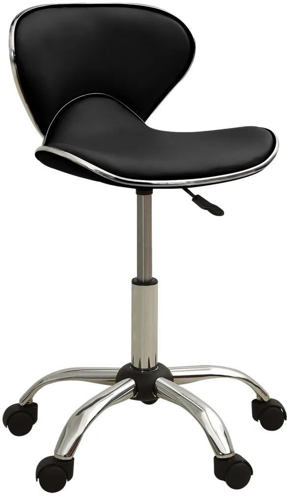 Taboret kosmetyczny, czarny, sztuczna skóra vidaXL Kolor: Array Ten stylowy taboret kosmetyczny charakteryzuje się idealną równowagą pomiędzy stylem i funkcjonalnością. To krzesło robocze obito łatwą w czyszczeniu skórą syntetyczną, oferując najwyższy komfort siedzenia. Jego wysokość można wyregulować oraz obraca się o 360 stopni, spełniając różne potrzeby. Ponadto pięć kółek zapewnia maksymalną mobilność. Kolor: czarny Materiał: sztuczna skóra (60% poliuretan, 30% poliester, 10% bawełna), chromowana stal Materiał wypełnienia: gąbka Wymiary: 46,5 x 48,5 x (69,5-83,5) cm (szer. x gł. x wys.) Szerokość siedziska: 46 cm Głębokość siedziska: 39 cm Wysokość siedziska nad ziemią: 40,5 - 54,5 cm Wysokość oparcia nad siedziskiem: 29 cm Regulacja wysokości: tak Podłokietniki: nie Model obrotowy: tak Kółka: tak Podnośnik pneumatyczny Wymagany montaż: tak Maksymalne obciążenie: 110 kg