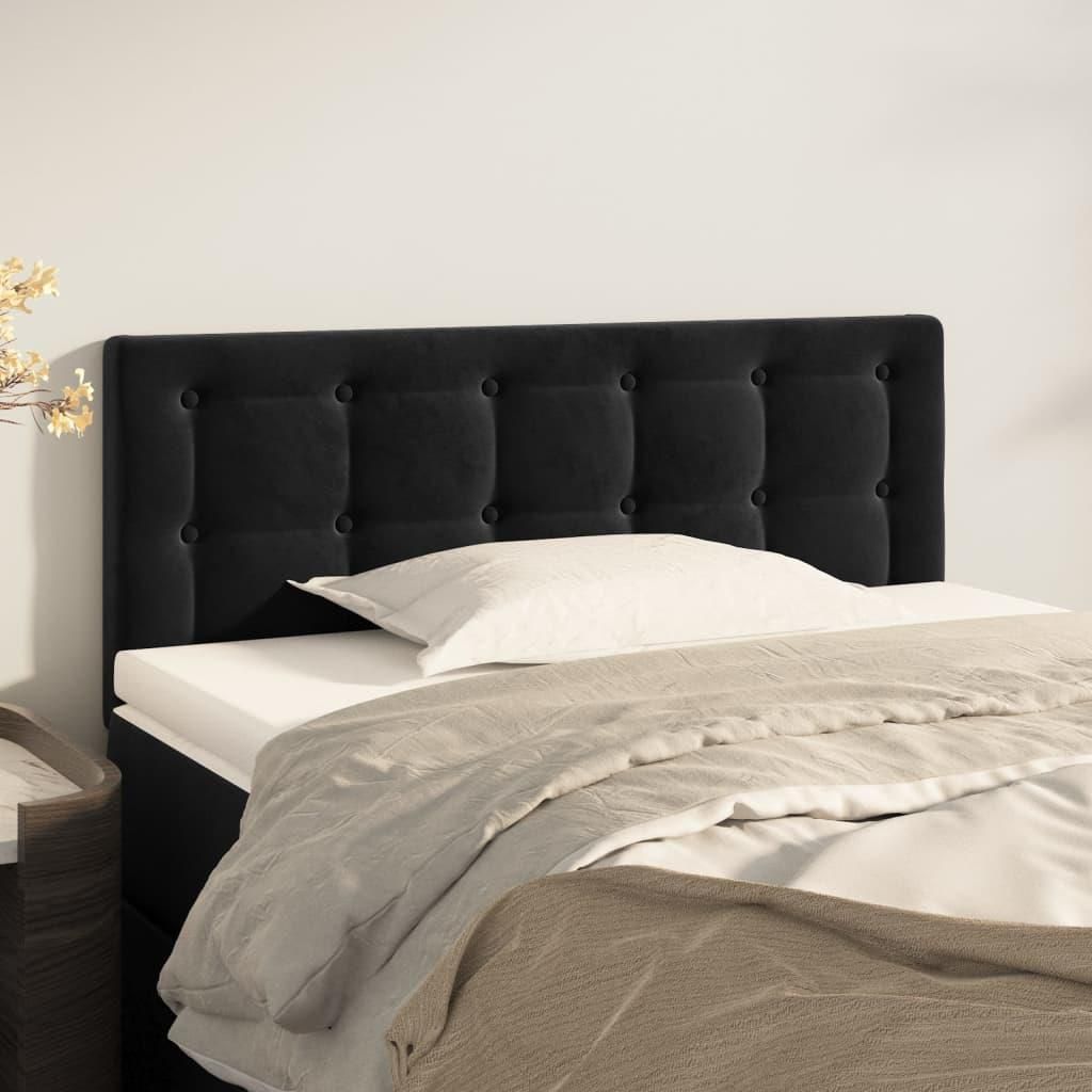 Zagłówek do łóżka, czarny, 80x5x78/88 cm, aksamit Ten klasyczny zagłówek o stylowym designie dopełni Twoje łóżko i będzie pasować do każdej sypialni. Miękka tkanina: aksamit to miękki, luksusowy materiał, który charakteryzuje się zwartymi, równo przyciętymi włóknami i gładkością. Aksamit wyróżnia …