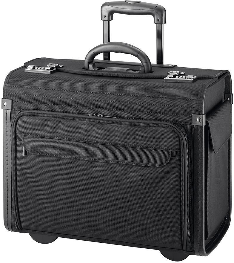 PILOTKA -Walizka -Wózek na dokumenty KEMER Materiał: Poliester Wysokość (cm): 36 Szerokość (cm): 46 Głębokość (cm): 23 Waga (kg): 4 Pojemność (l): 38 Typ zabezpieczenia: zamek szyfrowy Kolory: Czarny Rozmiar laptopa: do 17,3" Stan: Nowy Wózek na walizki pilota z 2 kółkami wykonany z wysokiej jakości nylonu do przechowywania dokumentów. Do praktycznego wnętrza należy również organizer i komora na laptopa. Dzięki dwóm zintegrowanym zamkom szyfrowym walizkę pilota można bezpiecznie zamknąć. Dodatkowo futerał pilota posiada przednią kieszeń z dwiema przegrodami zapinanymi na zamek oraz dwie boczne kieszenie.
