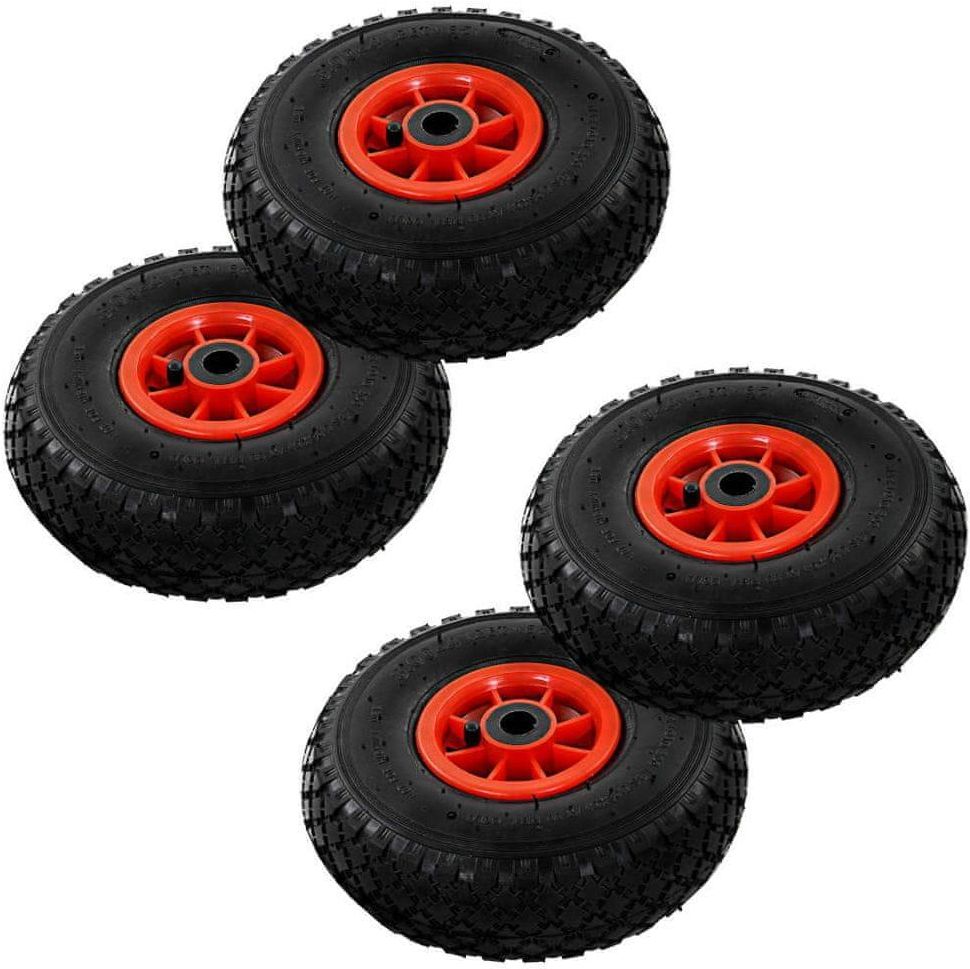 Koła są idealne do ciężkich prac związanych z transportem ładunków za pomocą wózków ręcznych, wózków transportowych, platform, wózków platformowych, taczek itp., nawet na nierównej nawierzchni. Opony pneumatyczne wykonano z wytrzymałej, odpornej na ścieranie gumy i wyposażono w specjalny bieżnik, który zapewnia dobrą przyczepność przy wyższych prędkościach. Obręcze kół zrobione są z mocnego plastiku. Te zapasowe kółka do wózka mają uniwersalny rozmiar i można je z łatwością zainstalować na wózku transportowym, wózku ręcznym itp. Przesyłka obejmuje 4 koła. Kolor: czarno-czerwony Materiał: gumowe opony pneumatyczne i plastikowe obręcze Wymiary: 245 x 82 mm (średnica x szer.) Rozmiar opony: 3.00-4 Średnica łożyska tocznego: 20 mm Maksymalne obciążenie (każdego koła): 100 kg Prosty montaż W skład przesyłki wchodzą 4 koła Uwaga: nie do użytku na autostradzie