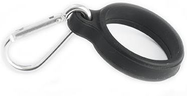 Wygodny karabińczyk do butelki Zamontowanie uchwytu z karabińczykiem jest bardzo proste. Wystarczy nałożyć silikonową część na szyjkę butelki, poniżej korka. Karabińczyk możesz przypiąć do plecaka, torby czy paska i mieć ją zawsze przy sobie.