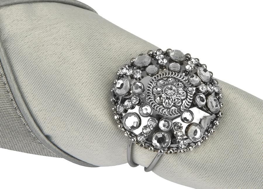 Urocza obrączka na serwetę w kształcie pierścienia z połyskującymi kryształkami. Obrączka na serwetkę dodaje nie tylko uroku, ale często ratuje z takich opresji jak nieumiejętne składanie serwetek. Nie musimy tego potrafić, bo serwetka udekorowana obrączką nie wymaga od nas specjalnych zdolności …