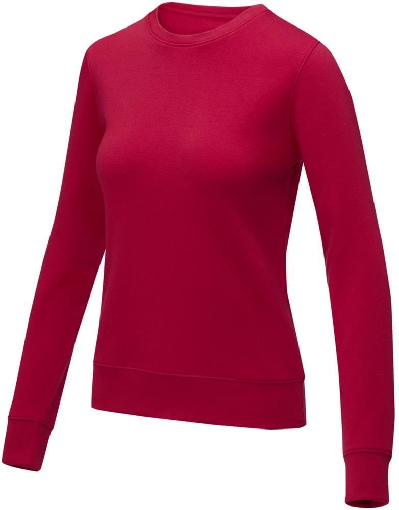 Damski sweter Zenon łączy w sobie wygodę i klasyczny design. Wykonany z mieszanki bawełny i poliestru o gramaturze 240 g/m². Klasyczny krój z okrągłym dekoltem jest podkreślony płaskimi ściągaczami na kołnierzu, mankietach i u dołu, zapewniając idealne dopasowanie i odrobinę wyrafinowania. Dodatkowo, wewnętrzne opcje niestandardowego brandingu pozwalają na spersonalizowany branding lub personalizację wewnątrz swetra. Szczotkowane wnętrze dodaje dodatkowej warstwy przytulności, dzięki czemu idealnie nadaje się na chłodniejsze dni. Dzięki przemyślanemu projektowi i wysokiej jakości materiałom, sweter Zenon jest wszechstronnym niezbędnikiem, który doda odrobinę indywidualności do Twojego wyglądu, zapewniając jednocześnie maksymalny komfort. Sweter ma dopasowany krój, dzięki czemu wygląda kobieco.