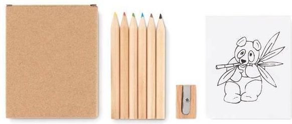 Zestaw do kolorowania w ekologicznym papierowym kartoniku. Zestaw do kolorowania składa się z:6 drewnianych kredek1 drewniana temperówka20 szt kolorowanek. Całość zapakowana w ekologiczny kartonik. Wymiary : 9X7.5X1.5CM------------------------------------------------------------------------------------------- Istnieje możliwość wykonania znakowania* *koszt znakowania uzależniony jest od użytej techniki, ilości kolorów oraz ilości zamówionych sztuk*minimalna ilość zamówienia produktu ze znakowaniem 50 sztuk*czas realizacji zamówienia z nadrukiem od 2-6 dni roboczych*przygotowanie wizualizacji w cenie zlecenia Kontakt w sprawie zamówień hurtowych: kasia@mediclapromo.pl ------------------------------------------------------------- Dla zamówień składanych przez jednostki budżetowe realizujemy zamówienia z odroczonym terminem płatności.Zachęcamy następujące podmioty do skorzystania z naszej oferty oraz składania zamówień i zapłaty do 14 dni od wysyłki towaru: jednostki samorządu i administracji państwowej spółki samorządów i Skarbu Państwa publiczne i samorządowe placówki oświatowe, przedszkola, szkoły uczelnie publiczne inne jednostki budżetowe Zamówienie można złożyć On-line przez nasz sklep lub mailowo: kasia@medicalpromo.pl Służymy fachową poradą w kwestiach związanych z zamówieniami: 608 100 445 / 608 100 448