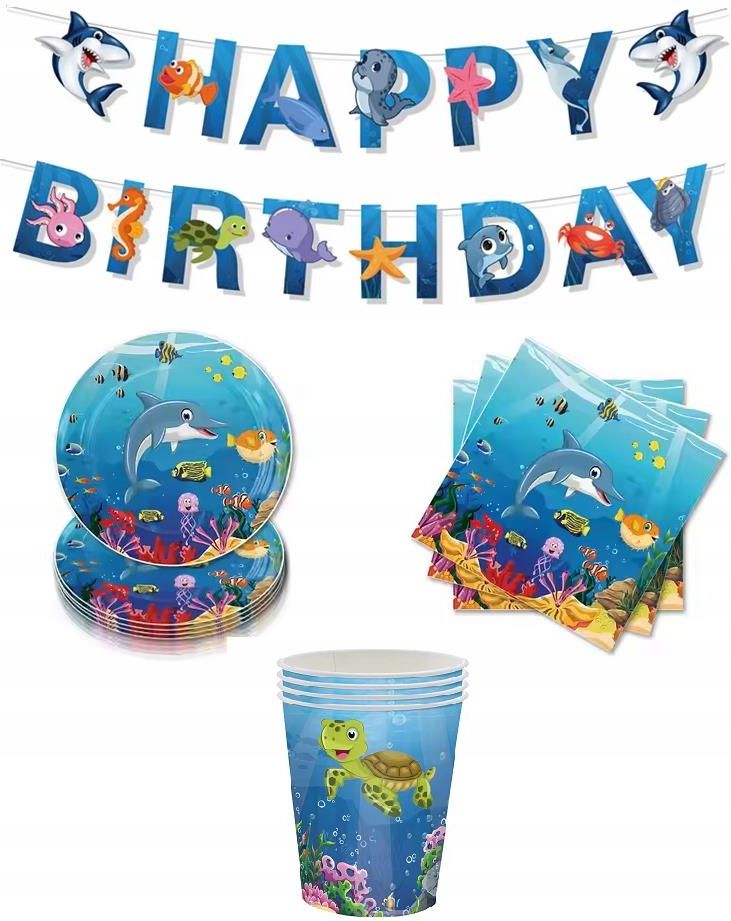 Zestaw Naczyń Jednorazowych Happy Birthday Urodziny Podwodny Świat 53 El Gdynia
