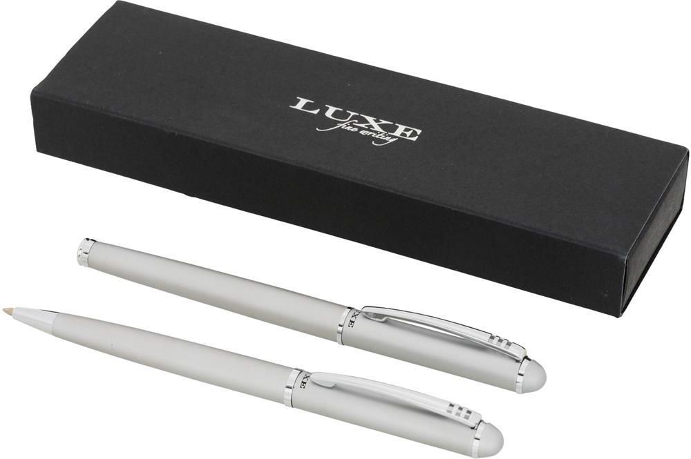 Zestaw piśmienniczy Andante Duo Waga (g): 20 Wymiary: 13,6 x ø 1 cm Kolory: Szary Ekskluzywnie zaprojektowany zestaw: długopis przekręcany i pióro kulkowe z zatyczką. Dostępne w kolorach: błyszczący czarny, matowy srebrny i matowy niebieski. Zapakowany w pudełko upominkowe "LUXE" (17 x 5.5 x 3 cm).