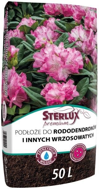 Podłoże do Rododendronów i innych wrzosowatych Sterlux Premium 50 L Podłoże przeznaczone do uprawy roślin kwaśnolubnych takich jak: rododendron, wrzos i wrzosiec oraz borówka i żurawina. W podłożu z powodzeniem można również uprawiać inne rośliny kwaśnolubne, np. magnolię, kalmię i modrzewnicę. …