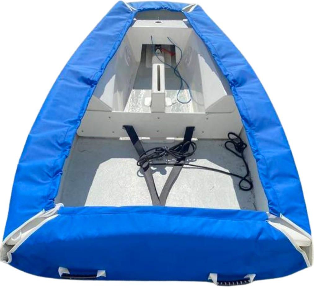 Pokrowiec wykonany z wysokiej jakości tkaniny wodoodpornej, odpornej na promienie UV, wytrzymałej na rozerwania 351 dtex/ PES o gramaturze 270,5g/m2. Zastosowany materiał jest łatwy w utrzymaniu w czystości. Wokół pokrowca zastosowano linkę ściągającą. Dolny pokrowiec jest w całości 3-warstwowy ,materiał zewnętrzny, pianka poliuretynowa niewchłaniająca wilgoci i folia wewnętrzna łatwa w utrzymaniu czystości. Przód i tył posiada raczki wzmacniane do przenoszenia.