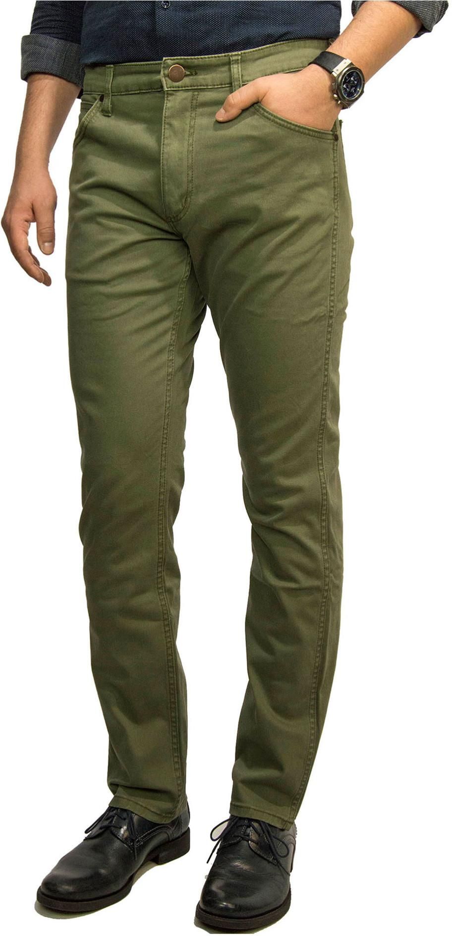 Kolor zielony, jednolite - bez wytarć. Uwagę zwracają prostotą, połączoną jednocześnie z ogromnym wyrafinowaniem. Perfekcyjne wykończenia i najwyższej jakości miękki materiał, gwarantuje marka Wrangler. Tylna prawa kieszeń upiększona kultową skórzaną naszywką z grawerowanym logo Wrangler. Obszycia stebnowane mocnymi nićmi, podkreślają ten świetny krój i kolor spodni. O ile cenisz sobie jakość i lubisz się nieco wyróżnić, koniecznie musisz je mieć! Bardzo uniwersalne - do marynarki, swetra, a także do koszuli, bluzy, czy t-shirtu. Zarówno do pantofli, obuwia sportowego, jak i do butów zimowych. Jakkolwiek, nosząc je przez cały dzień, to dzięki świetnemu krojowi, a także minimalnej ilości stretchu, będziesz się czuł bardzo komfortowo.