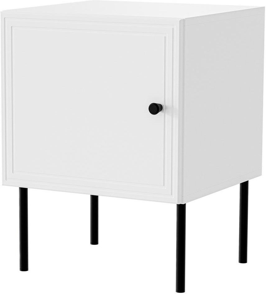 Specyfikacja Materiał wykończenia ramy Laminat Materiał wykończenia blatu Laminat Szuflady Nie Styl Nowoczesny Materiały MDF Materiały Płyta wiórowa Materiał nóg (podstawy) Metal Produkt wstępnie zmontowany Nie Kolor produktu Biały Kolor nóg Czarny Wykończenie Matowy Kolor drzwiczek Biały Materiał …