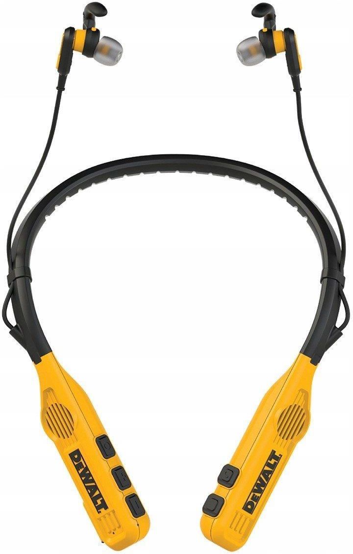 SŁUCHAWKI DOUSZNE DeWALT Z MIKROFONEM I GŁOŚNIKAMI BLUETOOTH 5.0 DO 60H SŁUCHAWKI DOUSZNE DeWALT Z MIKROFONEM I GŁOŚNIKAMI BLUETOOTH 5.0 DO 60H Cechy produktu Produkt został wyprodukowany przez amerykańską markę DeWALT Słuchawki douszne wbudowanymi głośnikami na pałąku Najważniejsze funkcje tryb słuchawki lub tryb głośnika elastyczny pałąk na szyję z prostym sterowaniem do 60 godzin pracy na jednym ładowaniu mikrofon do rozmów telefonicznych łatwa regulacja przyciskami na pałąku odporność IPX6 na zachlapania i pot regulowany kabel łączność Bluetooth 5.0 Cechy produktu Wszechstronne korzystanie z dźwięku – możliwość przełączania się pomiędzy trybem słuchawek a trybem głośnika pozwala dopasować sposób słuchania do sytuacji. Dzięki temu użytkownik może cieszyć się muzyką lub rozmowami prywatnie, a gdy potrzeba – włączyć głośniki i zachować świadomość otoczenia. To rozwiązanie zwiększa bezpieczeństwo i wygodę w miejscu pracy. Długi czas działania – akumulator zapewnia do 60 godzin pracy, co gwarantuje nieprzerwane użytkowanie przez kilka dni. Dzięki temu słuchawki idealnie sprawdzą się w długich dniach pracy, podróży czy podczas intensywnego korzystania. Intuicyjne sterowanie – elastyczny pałąk na szyję został wyposażony w prosty panel z trzema przyciskami. Pozwala on łatwo regulować głośność, odbierać połączenia i sterować multimediami. To znacząco poprawia wygodę obsługi, eliminując konieczność sięgania po telefon. Odporność na wymagające warunki – klasa ochrony IPX6 zabezpiecza słuchawki przed potem i zachlapaniem wodą. Użytkownik zyskuje pewność, że sprzęt sprawdzi się w trudnych warunkach, zarówno na budowie, jak i podczas aktywności sportowych. W zestawie znajdziesz kabel ładujący USB-C. Dane techniczne Bluetooth: 5.0 Mikrofon: Tak Bateria: Do 60 h Klasa odporności: IPX6 Wybierając produkt z tej oferty, masz pewność, że kupujesz oryginalny produkt DeWALT®!