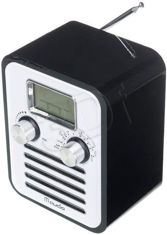 LM-44B M-Audio Radio Black. Maudio LM-44 to analogowy radioodbiornik firmy M-AUDIO. Posiada drewnianą obudowę i ekran LCD podświetlony na niebiesko w technologii: BLUE LIGHT. Wyświetla czas, datę, nazwę dnia oraz temperaturę. Wyposażony jest w magnetyczny głośnik wysokiej jakości o mocy wyjściowej 2 W. Pasmo przenoszenia to od 100 Hz do 10000 Hz. Obrotowa, teleskopowa antena pozwala odbierać fale w zakresach AM oraz FM. Radioodbiornik ten posiada oddzielne zasilanie dla zegara, a także funkcję budzenia 8 dźwiękami budzika. Zasilany jest sieciowo lub poprzez 5 baterii AA. Odbiornik ten wyposażony jest w wejście AUX umożliwiające podłączenie między innymi zewnętrznego odtwarzacza MP3. Rodzaj radia: Analogowe Zakresy: AM, FM Pamięć stacji: 0 Wyświetlacz: LCD, Tak, Z podświetleniem System fonii: Mono Ilość głośników: 1 Zasilanie: Baterie/sieć Rodzaj baterii: 5xAA Inne: Drewniana obudowa, Głośnik magnetyczny wysokiej jakości, Moc wyjściowa: 2 W, Obrotowa teleskopowa Antena, Pasmo przenoszenia 100 Hz - 10000 Hz Zegar: TAK Wejście AUX: Tak Inne: Blue Light: błękitne podświetlenie wyświetlacza, Ekran LCD, Odzielne zasilanie zegara, Wyświetlanie daty; nazwy dnia; temperatury C/F, 8 dźwięków budzika Załączone wyposażenie: Przewód zasilający Okres gwarancji: 24 miesiące LM-44 to analogowy radioodbiornik firmy M-AUDIO. Posiada drewnianą obudowę i ekran LCD podświetlony na niebiesko w technologii: BLUE LIGHT.