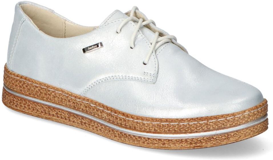 Stylowe półbuty popularnej marki Helios:- cholewka wykonana została ze skóry naturalnej licowej - wnętrze pokryte zostało skórą naturalną aby zapewnić komfort podczas użytkowania - sznurowadła ułatwiają zakładanie i dopasowanie obuwia- koturn o wysokości 2,5 cm zapewnia stabilizację i nadaje elegancji - srebrny kolor oraz ponadczasowy styl tworzą efekt, który zadowoli każdą kobietę!
