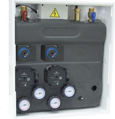 Zestawy mieszające z rozdzielaczem AZB to kompaktowe zestawy hydrauliczne w szafkach, przeznaczone do rozdzielenia źródła na dwie lub trzy strefy grzewcze. W zależności od wersji, poszczególne strefy mogą być zarówno zasilane medium o temperaturze uzyskiwanej na wyjściu ze źródła ciepła (obiegi bezpośrednie, bez mieszania), jak i o temperaturze niższej, uzyskiwanej dzięki mieszaniu. maksymalne ciśnienie: 4,5 bar pompa: 2 x Grundfos UPM3 AUTO 15-70 przyłącza od strony kotła: G¾" przyłącza od strony instalacji: GW G¾" maksymalna temperatura medium: 95°C zawór termostatyczny: nie zawór obrotowy: z siłownikiem ARM ProClick na 2 strefach