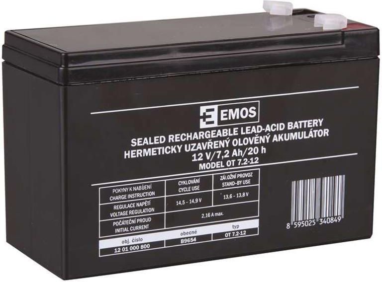 Akumulator AGM 12V 7,2Ah faston 6,3 Opis produktu Akumulator EMOS stosuje się, jako rezerwowe źródło zasilania do urządzeń zasilania rezerwowego UPS, zestawów RBC, samochodzików dla dzieci, itp. Bezobsługowy akumulator ołowiowy z zaworami regulacyjnymi w wykonaniu AGM umożliwiającym użytkowanie go w dowolnym położeniu. Optymalna żywotność w systemach zasilania rezerwowego wynosi 5 lat. Baterie kwasowo-ołowiowe bezobsługowe Baterie kwasowo-ołowiowe bezobsługowe EMOS przeznaczone są jako akumulatory zastępcze do zasilaczy awaryjnych UPS, zestawów RBC, elektronicznych systemów zabezpieczeń (ESS), elektrycznych systemów sygnalizacji pożaru (EPS), systemów podtrzymania pracy wind itp. Baterie tego typu nie są przeznaczone do magazynowania energii np. w systemach solarnych i nie mogą być stosowane jako akumulatory rozruchowe do samochodów, motocykli i skuterów elektrycznych. Bezpieczeństwo i najnowocześniejsza technologia Bezobsługowe, sterowane zaworem akumulatory kwasowo-ołowiowe EMOS w konstrukcji AGM mogą być instalowane w każdej pozycji. KumulatoryAGM zawierają elektrolit nasączony mikrowłóknami z laminatu szklanego, które są częścią separatorów pomiędzy poszczególnymi płytami ołowianymi. Jest to w zasadzie szklana włóknina, w którą wsiąka elektrolit podczas nalewania. Wylewanie się kwasu nie stanowi już zagrożenia, a baterie są dzięki temu bardzo bezpieczne w eksploatacji. Zawory bezpieczeństwa akumulatora zapobiegają jego wybuchowi w przypadku zagazowania. Cała pokrywa baterii jest zgodna z odpowiednią normą, a bateria spełnia ogólne wymogi bezpieczeństwa produktu. Ładowanie i obsługa akumulatorów Przed pierwszym użyciem należy naładować akumulator. W przypadku włożenia baterii do urządzenia, które nie potrafi wykryć stanu jej naładowania, może dojść do całkowitego rozładowania baterii, co spowoduje nieodwracalne uszkodzenie - zniszczenie baterii. Ładowanie akumulatora musi odbywać się przy użyciu odpowiedniego zasilacza lub ładowarki wspierającej technologię AGM, której napięcie ładowania wynosi 14,4 V dla akumulatorów 12 V i 7,2 V dla akumulatorów 6 V. Jeśli ładowarka lub zasilacz nie posiada tych parametrów, nastąpi niepełne ładowanie, szybkie zużycie energii, a w skrajnych przypadkach zniszczenie akumulatora. Optymalny okres eksploatacji w systemach backupu wynosi 5 lat. Podłączenie poprzez złącza FASTON Większość bezobsługowych akumulatorów kwasowo-ołowiowych EMOS jest wyposażona w zaciski FASTON. Terminale FASTON znajdują szerokie zastosowanie w urządzeniach elektronicznych i elektrycznych oraz w przemyśle motoryzacyjnym. Zaciski FASTON umożliwiają szybkie podłączenie przewodu i konektora do akumulatora. Parametry Marka: EMOS Główny kod zamówienia: B9674 Kod produktu: 1201002800 EAN: 8592920004449 napięcie: 12 V pojemność: 7,2 Ah bezobsługowy: tak pojazdy dla dzieci: nie latarki ładowalne: nie echosondy, sonary, zasilanie silników łodzi: tak traktory ogrodowe: tak optymalna żywotność: 5 lat waga: 2,2 kg technologia: AGM EZS (elektroniczne systemy zabezpieczeń): tak CENTRALE JABLOTRON JA100K: nie EPS (elektroniczne systemy przeciwpożarowe): nie złącza: faston 6,3 mm UPS (zasilanie rezerwowe): tak CENTRALE JABLOTRON JA82K: nie rodzaj: Pb oświetlenie awaryjne: nie PARADOX: nie CENTRALE JABLOTRON JA106K: nie CENTRALE JABLOTRON JA106K(R): nie CENTRALE JABLOTRON JA83: nie zasilanie oświetlenia awaryjnego i wywołania w windach: nie wymiary: 151 × 65 × 94 mm