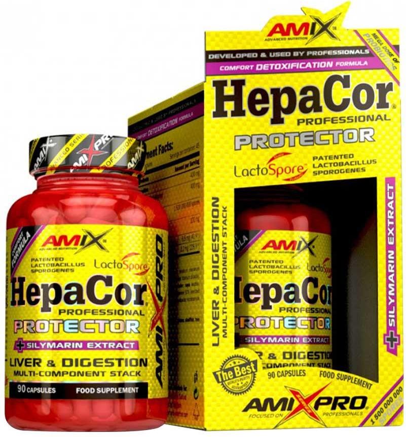 - najlepiej oceniany produktu w swojej kategorii Przekonaj się, dlaczego inni nas wybierają – dołącz do grona zadowolonych klientów! Tabletki na regenerację wątroby - Najbardziej kompleksowa formuła Amix HepaCore z dodatkiem probiotyków Profesjonalna ochrona wątroby i układu pokarmowego Działa osłonowo, usuwa toksyny, regeneruje, Wysoka jakość wszystkich składników produktu, Suplement dostępny w wygodnej formie kapsułek, Bogaty w naturalne ekstrakty, witaminy i minerały, Doskonały dla osób aktywnych, dbających o zdrowie i kondycję, Dodatek przebadanych klinicznie probiotyków LactoSpore® – zadba o Twój układ pokarmowy i pracę jelit. Zadbaj o swoją wątrobę z Amix HepaCore – najbardziej kompleksową formułą na rynku z dodatkiem probiotyków! Ten profesjonalny suplement w wygodnej formie kapsułek zapewnia ochronę wątroby i układu pokarmowego, działa osłonowo, usuwa toksyny i wspiera regenerację. Wysoka jakość składników, w tym naturalne ekstrakty, witaminy i minerały, sprawia, że jest idealny dla osób aktywnych dbających o zdrowie i kondycję. Dodatek klinicznie przebadanych probiotyków LactoSpore® wspomaga zdrowie układu pokarmowego i pracę jelit. Wybierz Amix HepaCore i ciesz się pełnym wsparciem dla swojej wątroby! Oferta promocyjna⌛ tylko 109 zł. Tniemy cenę z kwoty 135 zł. Nie przegap, oferta ograniczona czasowo! Ochrona wątroby i dobre trawienie – Kapsułki Amix HepaCor Protector Wątroba to organ, który pełni w naszym organizmie niezwykle istotną rolę. Dlatego też tak ważne jest, aby odpowiednio dbać o jej zdrowie i prawidłowe funkcjonowanie. Dzięki naturalnym suplementom, takim jak HepaCor Protector od Amix, możliwe jest profesjonalne, skuteczne wsparcie pracy wątroby, a co za tym idzie także całego organizmu. Szczególnie dla osób aktywnych, regularnie trenujących, efektywne i świadome wsparcie wątroby jest szczególnie istotne. W przypadku długotrwałego uprawiania wyczerpujących sportów siłowych, wątroba może bowiem potrzebować fachowej pomocy w postaci suplementów, aby mieć możliwość optymalnej regeneracji. Warto jednak pamiętać, że nie tylko kulturyści czy osoby uprawiające inne sporty siłowe narażone są na ewentualne nieprawidłowości w funkcjonowaniu wątroby. Problem ten może dotknąć każdego z nas, dlatego tak ważna jest nasza świadomość i odpowiednie reagowanie na jakiekolwiek nieprawidłowości. Dodatek LactoSpore® – klinicznie przebadany i bezpieczny probiotyk Lactospore jest preparatem zawierającym żywe kultury bakterii probiotycznych Bacillus coagulans MTCC 5856 o korzystnym dla zdrowia działaniu potwierdzonym w badaniach klinicznych. Odkryty pierwotnie pod nazwą Lactobacillus sporogenes – obecnie jako Bacillus coagulans szczep, produkuje wyłącznie jedyną biologicznie aktywną formą kwasu mlekowego L+ jak również związki przeciwdrobnoustrojowe dzięki którym skutecznie zapobiega rozwojowi szczepów patogennych jak i zakażeniom przewodu pokarmowego. . Dodatek Probiotyków pozwoli Ci lepiej wykorzystać białko i wspomoże twój mikrobiom. Dla kogo kapsułki na wątrobe Amix HepaCore? dla osób poszukujących skutecznego wsparcia dla wątroby, dla zawodowych sportowców, uprawiających sporty siłowe, dla profesjonalnych kulturystów, dla osób amatorsko uprawiających sporty, dla osób aktywnych, pragnących wzmocnić swoją wątrobę i odporność. Najważniejsze właściwości Co zawiera Amix HepaCor? L-karnityna ALC Kapsułki Hepacor to suplement, który charakteryzuje się bogatym, naturalnym składem o szczególnych właściwościach. Jego działanie opiera się przede wszystkim na naturalnych ekstraktach oraz szczególnej formie l-karnityny, jaką jest Acetylo L-Karnityna (ALC) Substancja ta ma za zadanie utrzymać na odpowiednim poziomie transport kwasów tłuszczowych z cytozolu do mitochondriów, dzięki czemu możliwe jest uzyskanie energii z tłuszczów. L-karnityna ma jednak także wiele innych, ważnych i korzystnych dla zdrowia organizmu właściwości – wspiera regenerację wątroby oraz znacznie zwiększa możliwości wysiłkowe organizmu. Ekstrakt z sylimaryny Innym składnikiem produktu jest naturalny ekstrakt z sylimaryny, będący substancją pochodzenia roślinnego. Środek ten wykorzystywany jest w medycynie i farmacji ze względu na swój korzystny wpływ na funkcjonowanie i zdrowie wątroby. Ekstrakt działa przeciwzapalnie, antyoksydacyjnie i detoksykująco. Ponadto bierze on także udział w procesie wytwarzania żółci, a tym samym wspomaga proces trawienia. Substancja ta zapobiega także marskości wątroby i skutecznie chroni ją przed działaniem niepożądanych środków, toksyn, a nawet trucizn. Przebadane klinicznie probiotyki Kolejny istotny element w składzie produktu, skutecznie wspierający wątrobę, to probiotyki lactospore. Jest to probiotyczna mieszanka zawierająca ponad 15 miliardów żywych bakterii, które z nienaganną skutecznością wspierają pracę nie tylko jelit, wątroby, ale także całego układu odpornościowego. Substancja ta stosowana jest zarówno u pacjentów z zespołem jelita drażliwego, jak i innych, cierpiących na podobne schorzenia jelitowe i pokarmowe. Fosfatydyloseryna – lecytyna sojowa W składzie znajdziemy również lecytynę sojową standaryzowaną na 50% zawartości Fosfatydyloseryny. Jej działanie jest związane z pozytywnym wpływem na mózgu i obniżeniem poziomu kortyzolu – hormonu stresu. Dlatego korzystnie wpływa na całościową pracę organizmu i samopoczucie. Fosfatydyloseryna zwiększa zdolności poznawcze oraz poprawia pracę mózgu i wzmaga uczucie koncentracji i skupienia. Witaminy z grupy B W składzie produktu znaleźć można także całą gamę cennych witamin i minerałów, takich jak witamina B3 – doskonale wpływająca na metabolizm energetyczny organizmu, utrzymująca odpowiedni poziom cholesterolu we krwi – czy witamina B6, która p