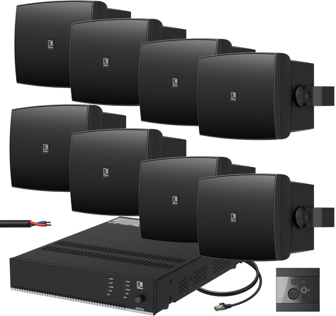W zestawie: AUDAC SCP224 - Kompaktowy dwukanałowy wzmacniacz mocy 2 x 240 W (4 Ohm) / 480 W (70/100 V) 4x AUDAC WX802MK2/B - Uniwersalny głośnik naścienny 8" Wersja czarna (PARA) AUDAC WP225/B - Panel naścienny kolor czarny Procab BLS215/1 Loudspeaker cable - 2 x 1.5 mm? - 16 AWG - CCA 100 meter - …