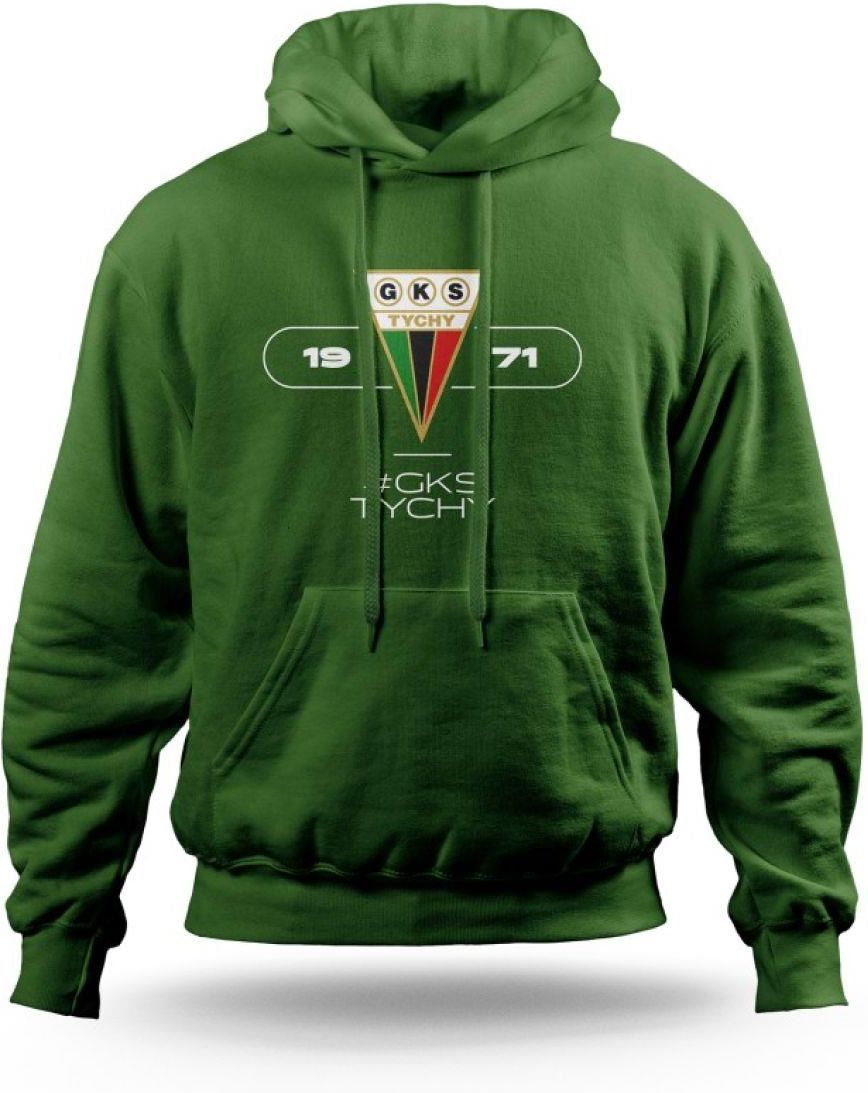 Bluza GKS Tychy #1971 Stylowa bluza dla prawdziwych fanów GKS Tychy. Bluza GKS Tychy #1971 to wyjątkowy element garderoby, który łączy klubową tradycję z nowoczesnym designem. Zielony kolor i duże logo GKS Tychy na froncie podkreślają przywiązanie do drużyny, a miękki materiał gwarantuje wygodę w każdej sytuacji. Główne cechy: Unikalny design: Charakterystyczny nadruk z herbem GKS Tychy oraz datą 1971 nawiązuje do historii klubu, napis # GKS Tychy uzupełnia całość. Wysokiej jakości materiał: 65% poliester, 35% bawełna – gwarantujący trwałość i wygodę użytkowania. Odpowiednia izolacja cieplna: Gramatura 290 g/m² gwarantuje ciepło podczas chłodniejszych dni, jednocześnie zachowując komfort noszenia. Praktyczne wykończenie: Kaptur z regulacją i duża kieszeń typu kangurka zwiększają funkcjonalność bluzy. Bluza GKS Tychy #1971 to doskonały wybór dla każdego kibica ceniącego wygodę i klubowy styl.