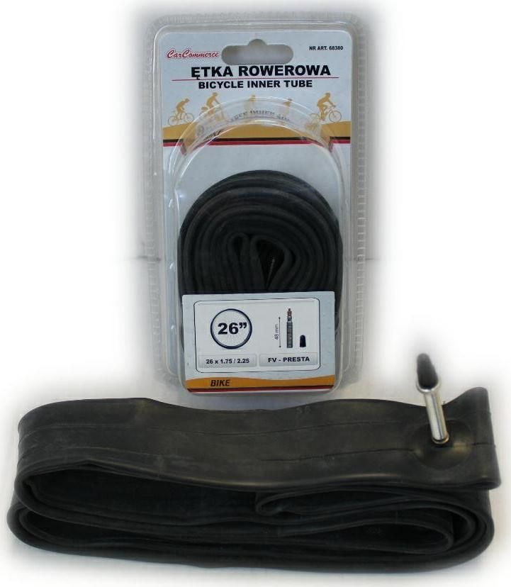 Dętka Rowerowa 26x1.75/2.25 FV – Super Mocna Butylowa Presta Opis produktu Super mocna dętka rowerowa 26 x 1.75–2.25 to solidny i niezawodny wybór dla rowerzystów, którzy oczekują trwałości, szczelności i dopasowania do nowoczesnych obręczy. Wykonana z wysokiej jakości butylu, zapewnia doskonałe utrzymanie ciśnienia, wysoką elastyczność i odporność na przebicia. Wentyl Presta (FV), stosowany w rowerach sportowych, trekkingowych i MTB, idealnie pasuje do obręczy z wąskim otworem. Główne atuty Wytrzymały butyl – lepsze utrzymywanie ciśnienia i odporność na uszkodzenia✅ Wentyl Presta (FV) – lekki, precyzyjny, idealny do sportowych obręczy✅ Rozmiar 26 x 1.75–2.25 – uniwersalny zakres do różnych typów opon✅ Fabryczna szczelność – gotowa do montażu, wolna od wad✅ Do codziennego i intensywnego użytku – jazda miejska, turystyczna, sportowa Cechy produktu Rozmiar: 26 x 1.75 – 2.25 Materiał: wysokiej jakości butyl Wentyl: FV / Presta (wentyl francuski) Stan: fabrycznie nowa, bez wad Kolor: czarny Zastosowanie: opony 26" o szerokości 1.75–2.25 cala Kompatybilność: rowery MTB, trekkingowe, turystyczne, miejskie FAQ – Najczęściej zadawane pytania Czy ta dętka pasuje do opony 26 x 2.10?Tak, dętka pasuje do opon w zakresie od 1.75 do 2.25 cala, więc będzie odpowiednia dla 2.10. Czy wentyl Presta wymaga specjalnej pompki?Tak, należy użyć pompki kompatybilnej z wentylem Presta, lub zastosować adapter FV–AV. Czy dętka jest fabrycznie testowana?Tak, każda dętka jest nowa, szczelna i poddana kontroli jakości przed pakowaniem.