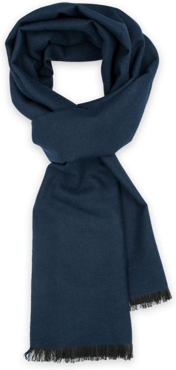 Ciepły szal z krótkimi frędzlami Ciepły szal w uniwersalnych kolorach. Urozmaici każdą kurtkę czy płaszcz. Zakończony krótkimi frędzlami. - Kolor: dwustronny - granatowy o gładkiej fakturze - Tkanina: 100% wiskoza - Długość: 180 cm - Szerokość: 31 cm - Gwarancja: 24 m-ce
