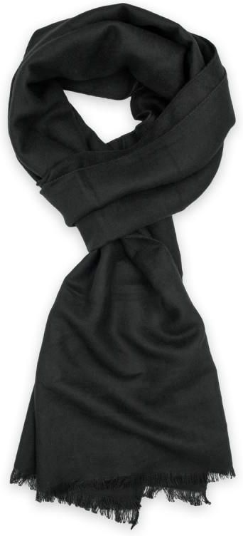 Ciepły szal z krótkimi frędzlami Ciepły szal w uniwersalnych kolorach. Urozmaici każdą kurtkę czy płaszcz. Zakończony krótkimi frędzlami. - Kolor: dwustronny - czarny o gładkiej fakturze - Tkanina: 100% wiskoza - Długość: 180 cm - Szerokość: 31 cm - Gwarancja: 24 m-ce
