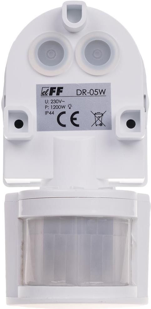 F&F DR-05W Detektor ruchu DR-05 biały 180° 230V AC Producent: F&F Kod EAN: 5908312591887 Kod producenta: DR-05W Napięcie zasilania: 195÷265 V AC Maksymalny prąd obciążenia AC-1: 5 A * Czas wyłączenia: 10 s ± 3 s ÷ 10 min ± 2 min. Detekcja ruchu: 0,6÷1,5 m/s Pole detekcji poziomej: 0°÷180° Pole detekcji pionowej: 0°÷90° Maks. regulowany promień detekcji (h: 2.5 m, Temp. ˂ 24 °C): 5÷12 m Wysokość montażu czujnika: 1,8÷2,5 m Zakres obrotu głowicy - w poziomie/w pionie: 180°/90° Rodzaj detekcji: Promieniowanie podczerwone Przyłącze: Zaciski śrubowe 1,5 mm2 Moment dokręcający: 0,3 Nm Pobór mocy: 0,5 W Temperatura pracy: -20÷40°C Wymiary: Głowica rozłożona poziomo: 70 x 205 x 45 mm; głowica rozłożona pionowo: 70 x 140 x 110 mm Montaż: Natynkowy Stopień ochrony: IP44 Automatycznie, czasowo załącza oświetlenie w przypadku pojawienia się osoby lub innego obiektu w takich miejscach, jak: korytarze, podwórza, podejścia i podjazdy, garaże, itp. Działanie czujnika ruchu podczerwieni: Czujnik ruchu podczerwieni działa poprzez wykrywanie przemieszczania się źródeł ciepła, które znajdują się w obszarze jego działania. Na skuteczność detekcji mają wpływ: - ilość ciepła emitowanego przez poruszający się obiekt oraz temperatura otoczenia,- wielkość poruszającego się obiektu,- kierunek oraz prędkość ruchu. Efektywność czujnika ruchu podczerwieni będzie najmniejsza gdy:- temperatura poruszającego się obiektu jest zbliżona do temperatury otoczenia (np. nasłonecznione pomieszczenie, kaloryfer w polu detekcji, itp.),- obiekt porusza się z małą prędkością bezpośrednio w kierunku czujnika ruchu,- rozmiary poruszającego się obiektu będą niewielkie w porównaniu z obszarem strefy detekcji. Przykładowe sytuacje mogące doprowadzić do nieprawidłowej pracy czujników ruchu podczerwieni:- Źródła światła znajdujące się w polu detekcji czujnika ruchu PIR. Załączenie/wyłączenie światła powoduje dużą i szybką zmianę temperatury żarówki, co może być zinterpretowane przez czujnik ruchu podczerwieni jako poruszający się obiekt.