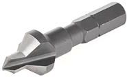 Frez pogłębiacz pod wkręty 5/12mm GekoWiertło / frez z pogłębiaczem 5/12 mm pod wkręty, przeznaczony do nawiercania oraz jednoczesnego frezowania drewna, w taki sposób aby po wkręceniu łeb wkręta zrównał się z powierzchnią obranianego materiału.Charakterystyka produktu: wykonany ze stali szybkotnącej HSS jednocześnie nawierca oraz frezuje otwór pod kątem 45 przeznaczony do wykonywania otworów pod wkręty fi 5,5-6 mm z łbem wpuszczanym posiada sześciokątny trzpień mocujący pasujący to standardowego uchwytu na bity Specyfikacja techniczna: Materiał: stal HSSŚrednica wiertła: 5 mmŚrednica pogłębiacza: 12Kąt: 45Ilość krawędzi tnących: 3Trzpień mocujący: 6-kątny