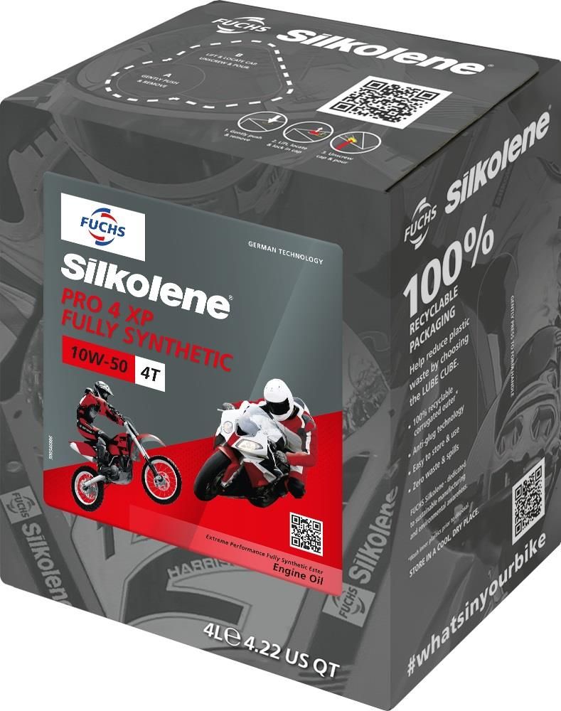 OLEJ SILNIKOWY FUCHS SILKOLENE PRO 4T 10W50 - XP 4L Oparty na XP Technology, w pełni syntetyczny, estrowy olej do mocno obciążonych 4-suwowych silników motocyklowych. Technologia XP zastosowana w najnowszej, innowacyjnej formule o wysokiej odporności na ścinanie i niskiej odparowalności, zapewniająca wzrost mocy oraz optymalną ochronę silnika i skrzyni biegów. Redukuje zużycie oleju i zużycie paliwa nawet w warunkach wyścigowych. XP Technology przeciwdziała zużyciu ściernemu silnika i zmniejsza tarcie wszystkich obciążonych, współpracujących powierzchni zarówno w wysokiej temperaturze jak i podczas zimnego rozruchu. Olej został przygotowany by spełnić wymagania silników czterosuwowych, zarówno chłodzonych cieczą jak i powietrzem, w motocyklach drogowych oraz terenowych. SILKOLENE PRO 4 10W-50 XP jest idealny do silników o dużych pojemnościach, szczególnie w wysokich temperaturach otoczenia. 602013682 FUCHS - Oleje, smary, płyny, chemia 5031131763354