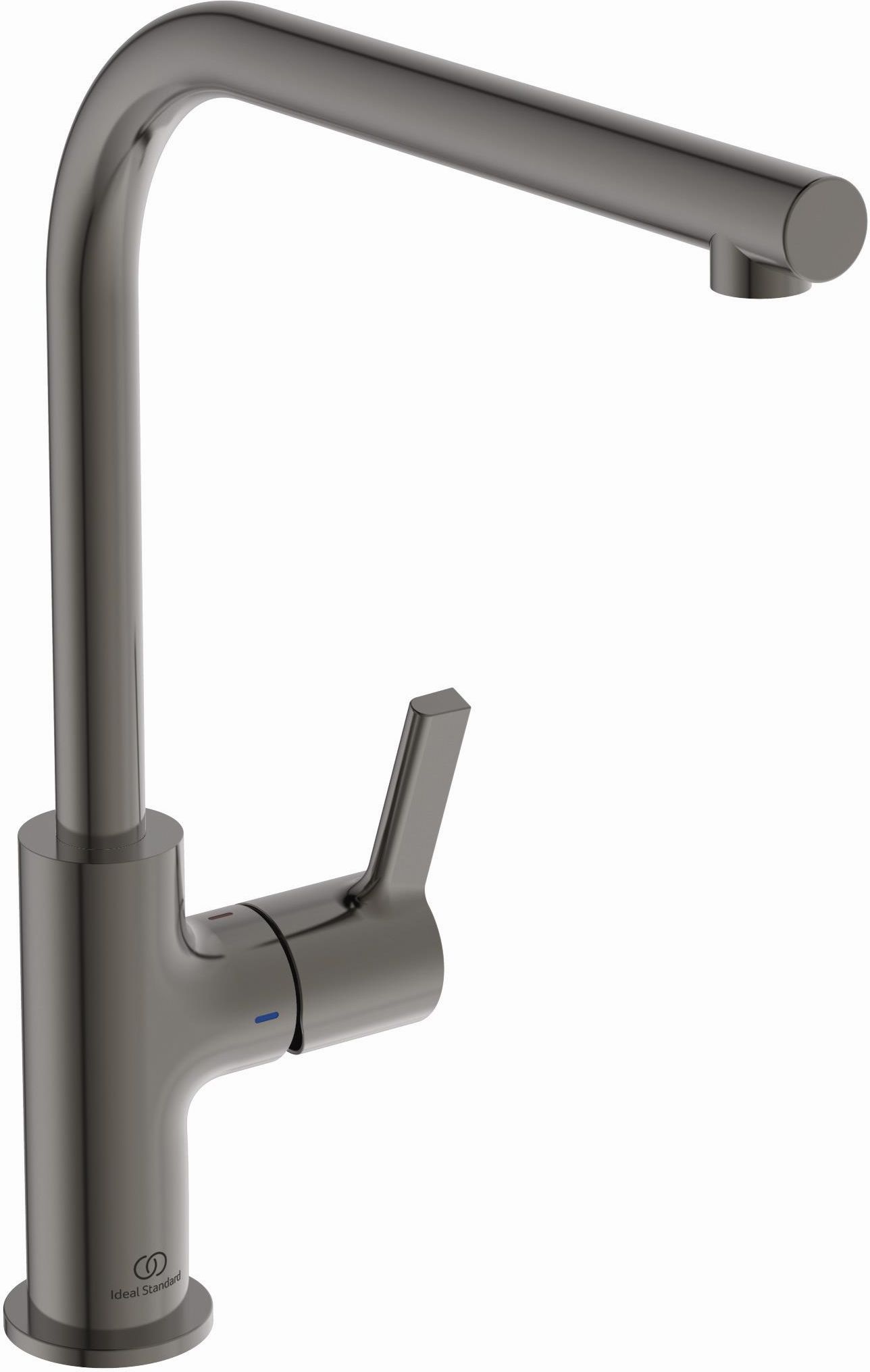 Kran linii kuchennej z rurkowym i obrotowym wysokim ustem L System otwierania w zimnej wodzie BlueStart zapewnia oszczędność energii oraz szybki i łatwy system mocowania EasyFix+ Wyposażony w wkład Firma Flow 28 mm, zaprojektowany tak, aby trwały, o maksymalnym natężeniu przepływu 9 l/min Z zaworem zwrotnym i wężami z mocowaniem G3/8" Oryginalny Ideal Standard