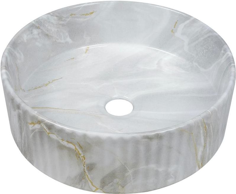 Umywalka nablatowa Glamour beż połysk marmur Umywalka nablatowa w kształcie misy z płaskim dnem to modne i jednocześnie klasyczne rozwiązanie do strefy umywalkowej. Taka forma świetnie sprawdzi się we wnętrzach urządzonych w stylu skandynawskim. Subtelna umywalka będzie również doskonałą partnerką dla nieco bardziej wyrazistych baterii umywalkowych utrzymanych w kolorze modnej czerni, złota lub miedzi. Do kompletowania z wyoskimi bateriami umywalkowymi lub bateriami podtynkowymi. Niezwykle przemyślana koncepcja i bardzo oryginalny projekt – umywalka nablatowa Glamour reprezentuje sztukę użytkową, która w równym stopniu jest przedmiotem praktycznym, jak i dekoracyjnym. Wyróżnia ją zarówno forma, jak też kolorystyka i wzornictwo. Umywalka nablatowa Glamour przypomina nieco kamienną rzeźbę. Jej marmurowy wzór sprawia, że nawiązuje w pewnym stopniu do wnętrz z przeszłości. Zewnętrzna jej powierzchnia jest żłobiona, co z kolei ma być nawiązaniem do nowoczesności. Marmurowa umywalka nablatowa Glomour kształtem również odpowiada aktualnym trendom. Jest okrągła, z płaskim dnem i wysokimi, prostopadłymi rantami. To wyjątkowe połączenie formy i koloru, które sprawia, że marmurowa umywalka nablatowa Glamour jest produktem o unikalnej urodzie. Marmurowa umywalka nablatowa Glamour ma średnicę 36 cm. Zajmuje stosunkowo niewiele miejsca, ale zapewnia dużą powierzchnię użytkową. Jest bardzo praktyczna również pod względem pielęgnacji, łatwo ją utrzymać w należytej czystości. Marmurowa umywalka nablatowa Glamour wykonana została też z wysokiej jakości ceramiki, co zapewnia jej trwałość i wytrzymałość. Cechy marmurowej umywalki nablatowej Glamour: Elegancki marmurowy wzór Efektowne ryflowanie na zewnętrznych powierzchniach Okrągły kształt z wysokimi rantami Połyskujące wykończenie Łatwa codzienna pielęgnacja Pomysł na aranżację z marmurową beżową umywalką nablatową Glamour Monumentalny charakter marmurowej umywalki nablatowej Glamour sprawia, że idealnie pasuje ona do wystawnych wnętrz inspirowanych stylem angielskim i francuskim. Pięknie współgra z jasną kolorystyką, innymi kamiennymi powierzchniami, ryflowaniem na ścianach i rzeźbionymi ozdobami. Jej dekoracyjny charakter sprawia też, że dobrze czuje się we wnętrzach minimalistycznych, gdzie ma szansę stać się najbardziej wyrazistym elementem. Polubiła się ze stylem skandynawskim i modernistycznym. Beżowo-brązowe użylenie pasuje fantastycznie do złotej armatury łazienkowej, zarówno sztorcowej, jak i ściennej, szczególnie podtynkowej. Stworzy subtelne połączenie kolorystyczne z delikatnym różem i naturalną zielenią. Umywalce nablatowej Glamour sprzyjają geometryczne formy. Świetnie czuje się w towarzystwie okrągłych, kwadratowych i kanciastych elementów. Marmurowa umywalka nablatowa Glamour to niezwykły pokaz monumentalnej elegancji, szyku i nowoczesnego wzornictwa. To ceramika, która świetnie odzwierciedla charakter współczesnej sztuki użytkowej. SPECYFIKACJA Stawiana na blat, okrągła Otwór przelewowy: nie Otwór na baterię: nie Korek w komplecie: nie Wymiary: 36 x 36 x 12 cm Głębokość wewnętrzna misy: 10,5 x cm Kolor: szary połysk z efektem marmuru (złoto) Do kompletowania z bateriami wysokimi lub bateriami podtynkowymi oraz korkami click-clack OKRES GWARANCJI Firma Invena S.A. udziela gwarancji na okres: 10 lat na miski WC i umywalki, 2 lata na elementy nie ceramiczne 2 lata na trwałość wzoru w umywalkach marmurkowych Gwarancja obejmuje zachowanie koloru i jednolitości szkliwa wyrobów ceramicznych (dopuszczalne są małe wtrącenia, niewidoczne nieuzbrojonym okiem z odległości ok 40cm); zachowanie wymiarów w granicach tolerancji +/- 10mm