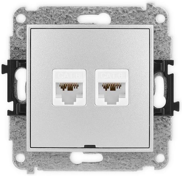 Karlik ICON Gniazdo komputerowe 2xRJ45 kat. 6A 8-stykowy bez pola opisowego srebrny metalik 7IGKBO-8 Gliwice
