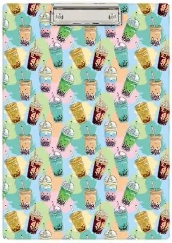 Klip A4 deska bubble tea BIURFOL ✅ ✔️ Wykonana z folii PVC z pełnym, ozdobnym nadrukiem, wewnątrz usztywniona tekturą. Wyposażona w sprężysty mechanizm zaciskowy służący do przytrzymywania kartek papieru. Służy jako sztywna podkładka do pisania podczas konferencji, spotkań, jak i codziennej pracy. …