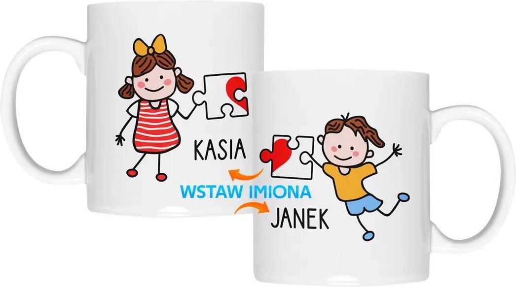 Koszulkowy.Pl Koszulkowy Pl Komplet Dla Pary Puzzle + Imiona Kubki Z Nadrukiem Personalizowany Gliwice