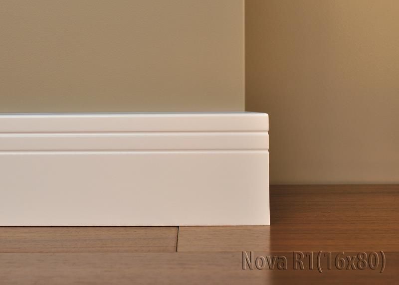 Wilgocioodporna listwa przypodłogowa wykonana z MDF, lakierowana na biało, kolor z palety RAL 9003. Dzięki najnowszej technologii lakierowania lakier nie żółknie i nie płowieje. Wymiary: 16x80x2440mm MATERIAŁ: MDF - płyta drewnopochodna średniej gęstości, podstawowy materiał do produkcji mebli powierzchnia lakierowana lakierami poliuretanowymi dolna krawędź izolowana przeciwwilgociowo listwy posiadają podfrezowanie na kable oraz frezy poprawiające mocowanie do ściany