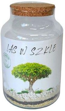Oferujemy Państwu zestaw do wykonania własnego lasu w szkle. W pakiecie znajdują się wszystkie podstawowe elementy do stworzenia wyjątkowego ekosystemu. Duży słój zamykany korkiem. Wykonany z ręcznie dmuchanego szkła. Ze względu na ręczną produkcję wymiary poszczególnych wyrobów mogą się minimalnie różnić między sobą. Parametry szkła: wysokość : 31 cm średnica max: 19 cm Zestaw dodatków : Węgiel aktywny: 125 g Piasek jasny - 0,5 kg Żwirek jasny - 0,5 kg Biały kamień dekoracyjny - 0,5 kg Instrukcja