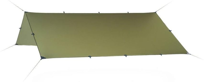 Lesovik GROZA to uniwersalny tarp turystyczny, który doskonale sprawdzi się w roli zadaszenia hamaka oraz daszku nad posłaniem na ziemi. Uniwersalny tarp turystyczny Tarp Groza UL jest bezkonkurencyjny w kategorii pełnowymiarowych tarpów, ponieważ waży zaledwie 540 g, czyli jest lżejszy o około 60% od standardowych płacht biwakowych. Groza tworzy lekkie, trwałe i łatwe w obsłudze schronienie w warunkach turystycznych, które zapewnia odpowiednią ilość miejsca dla 2-3 osób z plecakami. Trap można błyskawicznie rozwiesić na kilka sposobów, tworząc osłonę przed słońcem i deszczem, ultralekki namiot, parawan, a także finezyjne tipi. Dzięki gaszonej kolorystyce tarp Groza łatwo wtapia się w leśne środowisko, dlatego nasz nocleg nie przyciąga uwagi. Wymiary GROZY 3 × 3 mm zapewniają wystarczającą przestrzeń do obozowania, odpoczynku i noclegu nawet dla kilku osób. Pod tarpem można schronić się przed pogodą, przepakować plecak, przygotować posiłek i spokojnie się wyspać. Powierzchnia 9 m2 sprawia, że pod tarpem bez problemu zmieścimy standardowy hamak, który w ten sposób ochronimy przed nocnymi opadami. Trwałe materiały Do budowy GROZY zastosowano materiał silnylon w splocie mikroripstop o wodoodporności aż 6000 mm H20. Według danych producenta norma ta dwukrotnie przekracza współczesne standardy rynkowe. Tkanina jest także wiatroszczelna i odporna na uszkodzenia mechaniczne. Tkanina jest też wiatroszczelna i odporna na uszkodzenia mechaniczne. Wytrzymałość tkaniny zawdzięcza wspomniany splot mikroripstop, który w sytuacji przebicia tkaniny chroni przed roztarganiem. Elementy montażowe są wycinane laserowo z Hypalonu (laminat gumowo-nylonowy) wykonane są z myślą o użyciu kijków trekkingowych jako stelaża. Zastosowanie 19 punktów mocowania odciągów ułatwia dokładne zabezpieczenie przed pogodą oraz pozwala na swobodne wykorzystywanie plandeki w różnych rolach m.in. jako daszek dwuspadowy, jednospadowy, „diament”, schron oraz namiot hamakowy zamknięty. Dodatkowo po uniesieniu jednego boku na kijach trekingowcyh, możemy stworzyć przestronne zadaszenie. Połączeni kilki tarpów GROZA umożliwia stworzenie pawilonu outdoorowego dla kilkunastu osób. Dla zwiększenia trwałości mocowania odciągów wykonano z laserowo wycinanego Hypalonu – laminatu gumowo-nylonowego, stosowanego m.in. do produkcji sprzętu wojskowego i pontonów górskich. W nowej wersji tarpa zrezygnowano z taśmy poliamidowej naszywanej na grzbiet, zastępując ją potrójnie podwiniętym szwem. Pozwoliło to nie tylko na zmniejszenie masy płachty, ale wpłynęło też na funkcjonalność, ponieważ dzięki tej operacji tarp można łatwiej i równomierniej naciągnąć. Łatwy montaż Łatwość montażu tarpa zapewnia zintegrowany mechanizm napinania linek. System zawieszenia jest prosty i można go łatwo obsługiwać jedną ręką, w dodatku bez znajomości węzłów. Wystarczy zamocować linkę do podłoża i naciągnąć. Regulator napięcia linki automatycznie blokuje ją i zapobiega jej luzowaniu. Odciągi grzbietowe mają mini haczyki, dzięki czemu mocowanie tarpa do drzew odbywa się bez konieczności stosowania węzłów. Do rozstawienia tarpa wymagane jest użycie 4 śledzi (brak w zestawie). Cechy wykonany z 100% silnylonu w splocie mikroripstop o wododoprności 6000 mm H20 możliwość rozwieszenia na wiele sposobów pasuje do hamaków DUCH i SUL 19 punktów mocowania odciągów doskonała opcja dla osób planujących nocleg na ziemi lub hamaku system mocowania przystosowany do kijów trekkingowych opcja niskiego zawieszenia, lub rozstawienia tarpa w formie namiotu w komplecie: tarp, pokrowiec transportowy, zintegrowany system zawieszenia i regulacji zintegrowany system zawieszenia i napinania odciągów mocowanie do drzewa za pomocą mini haczykom (system bezwęzłowy) w zestawie: tarp, pokrowiec transportowy, zintegrowany system zawieszenia i regulacji, instrukcja