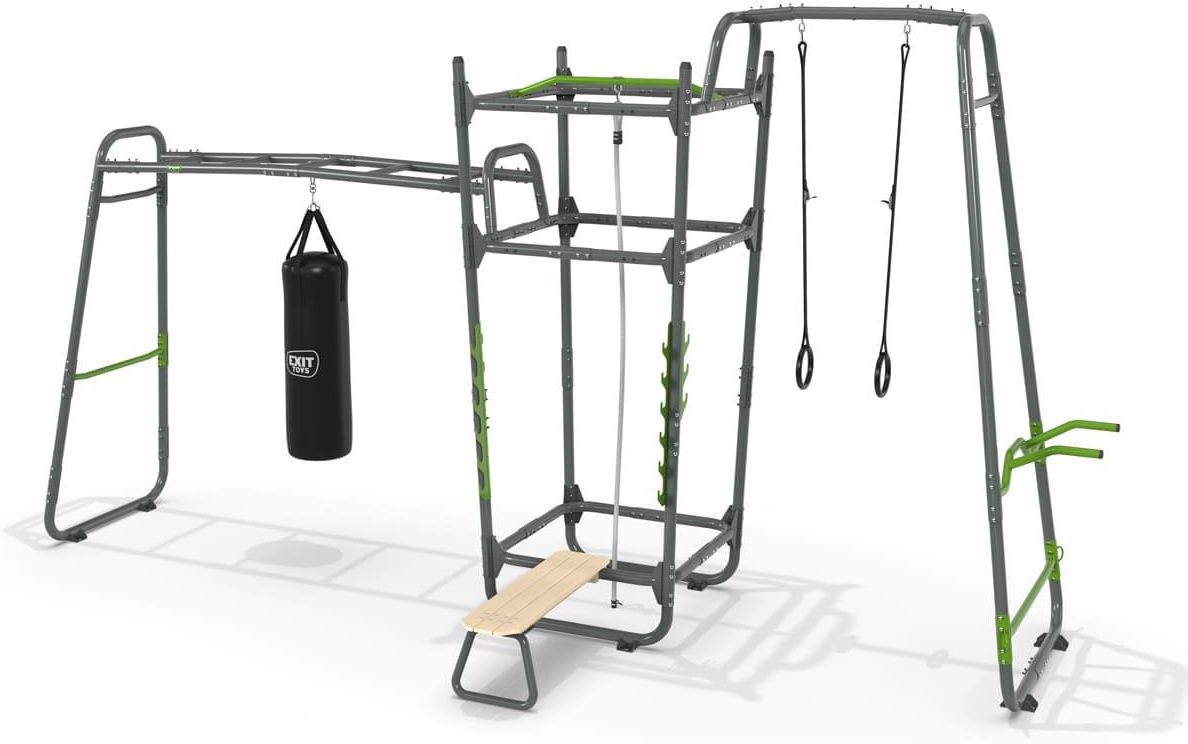 Exit Siłownia Fitness GetSet PS610 Stacja treningowa siłowa gimnastyczna Stanowisko do ćwiczeń: drążki, ławka, stojak, worek, lina, drabinka, kółka Został stworzony przez holenderską markę Exit Toys która produkuje zabawki i wysokiej jakości sprzęty outdoorowe. W ofercie znajdują się m.in. …