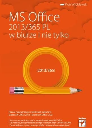 Poznaj najważniejsze możliwości pakietów Microsoft Office 2013 i Microsoft Office 365! Naucz się sprawnie korzystać z narzędzi nowej wersji MS Office Stwórz błyskawicznie materiały reklamowe używając programu Publisher Dowiedz się, jak uzyskać zdalny dostęp do danych dzięki usłudze SkyDrive Poznaj najlepsze metody wymiany plików i skutecznej pracy zespołowej Microsoft Office 2013 to kolejna wersja najpopularniejszego na świecie pakietu aplikacji biurowych. Jej twórcy wykorzystali najlepsze rozwiązania znane z edycji 2010 i kreatywnie je rozwinęli, aby zapewnić użytkownikom wysoki komfort i większą wydajność pracy przy zachowaniu dużej elastyczności dostępnych narzędzi. Nowe wydanie MS Office oferuje bowiem wiele usprawnień ułatwiających wykonywanie typowych, często powtarzanych operacji, a także liczne funkcje zapewniające efektywną pracę zespołową oraz narzędzia umożliwiające edytowanie nowych formatów plików (PDF!) i korzystanie z danych przechowywanych w chmurze. Nie inaczej jest z rozwiązaniem Office 365, abonamentową, dostępną przez sieć wersją pakietu, której możliwości z pewnością zadowolą użytkowników ceniących zdalny dostęp do aplikacji. MS Office 2013/365 PL w biurze i nie tylko to podręcznik dla osób pragnących szybko i sprawnie poznać możliwości najważniejszych programów wchodzących w skład nowej edycji pakietu. Z tej książki dowiesz się, jak za pomocą edytora Word tworzyć atrakcyjne dokumenty tekstowe oraz jak przetwarzać dane liczbowe i przedstawiać je na wykresach arkusza kalkulacyjnego Excel. Poznasz również sposoby przygotowywania efektownych prezentacji multimedialnych w programie PowerPoint oraz skutecznego zarządzania notatkami przy użyciu aplikacji OneNote. Uzupełnieniem jest rozdział o możliwościach programu Outlook będącego połączeniem wygodnego narzędzia do zarządzania pocztą e-mail i elektronicznego terminarza. Opisom poszczególnych funkcji towarzyszą liczne ćwiczenia praktyczne, dzięki którym będziesz mógł natychmiast wypróbować i utrwalić zdobytą wiedzę. Instalowanie pakietu Microsoft Office w systemach Windows i Mac OS Zakup i używanie wersji abonamentowej (Office 365) Edytowanie i formatowanie tekstu w Wordzie Umieszczanie w dokumentach tabel, grafik, spisów treści i innych elementów Edytor równań matematycznych i korespondencja seryjna Praca zespołowa z użyciem pakietu Microsoft Office Przetwarzanie i analizowanie danych za pomocą programu Excel Tworzenie wykresów i przeprowadzanie symulacji w Excelu Opracowywanie prezentacji multimedialnych w programie PowerPoint Korzystanie z możliwości elektronicznego notatnika OneNote Używanie makr i aplikacji Visual Basic for Applications w Excelu Zabezpieczanie zawartości dokumentów pakietu Microsoft Office Korzystanie z poczty elektronicznej w programie Outlook Zarządzanie zadaniami i używanie kalendarzy Outlooka Rozpocznij samodzielną pracę z najnowszym pakietem biurowym firmy Microsoft! Spis treści: Wstęp (9) Rozdział 1. Microsoft Office - zakup, instalacja i uruchamianie (15) Czym się różni Office 2013 od Office 365? (16) Pudełkowe wersje pakietu Office 2013 (17) Zakup i instalacja wersji Office 365 (18) Office 365 dla użytkowników Mac OS (21) Konto w usłudze Office 365 (22) Instalator pakietu Microsoft Office - na co zwrócić uwagę? (24) Uruchamianie programów Microsoft Office (26) Co nowego w Microsoft Office 2013? (27) CZĘŚĆ I WORD I PODSTAWY OBSŁUGI PAKIETU OFFICE (29) Rozdział 2. Interfejs użytkownika pakietu Office na przykładzie edytora Word (31) Ekran programu Microsoft Word i nowe funkcje interfejsu użytkownika (32) Jak uruchomić program Word? (32) Ułatwienia obsługi w Microsoft Office (35) Interfejs Office w wersji dla komputerów Mac (38) Otwieranie i zapisywanie dokumentów (39) Zapisywanie i odczytywanie dokumentów (39) Zapisywanie dokumentu na dysku SkyDrive (44) Funkcjonalność edytora (47) Word 2013 - mapa aplikacji (47) Menu systemowe Plik w Wordzie (49) Opcje programu Word (49) Podgląd i wydruk dokumentu (52) Opcje drukowania (53) Rozdział 3. Formatowanie tekstu (57) Wpisywanie tekstu (57) Akapit (59) Wyrównanie tekstu względem marginesów (59) Podwieszony akapit (61) Odstępy między akapitami (62) Dzielenie i przenoszenie akapitów (64) Dzielenie wyrazów (64) Numerowanie i punktowanie akapitów (65) Wyróżnianie elementów tekstu (67) Błędy, ach te błędy! (68) Zastosowanie schowka Windows w edytorze (69) Tryby specjalne operacji wklejania (69) Malarz formatów i zasady powielania formatów (71) Edycja dokumentów PDF (71) Rozdział 4. Czcionki, symbole, style... (73) Czcionki i ich rozmiary (73) Powiększanie lub zmniejszanie czcionki (76) Nietypowe symbole w tekście (76) Narzędzia nie tylko dla polonistów i tłumaczy (78) Znaki diakrytyczne różnych języków (78) Korekta pisowni i gramatyki (79) Słowniki języków obcych w Wordzie (79) Narzędzia dla tłumaczy (81) Style (82) Szablony dokumentów (84) Pola i obiekty aktywne w dokumentach (86) Wstawianie daty i godziny oraz innych pól specjalnych (86) Osadzanie obiektów w dokumentach pakietu Office (88) Rozdział 5. Tabele i układ kolumnowy (91) Podstawowe techniki rysowania tabel (91) Modyfikowanie struktury tabeli (94) Tryb wielokolumnowy (gazetowy) (98) Bardzo długie tabele (wielostronicowe) (99) Rozdział 6. Nagłówki, stopki i spisy (nie tylko treści) (101) Podział dłuższych dokumentów na strony (102) Nawigacja (103) Wyszukiwanie i zamiana tekstu (104) Stopki i nagłówki w Wordzie (105) Różne stopki i nagłówki dla odrębnych części dokumentu (107) Stopki i nagłówki dla zaawansowanych (109) Numeracja stron dla zaawansowanych (110) Numerowanie nagłówków i spis treści (111) Przygotowanie dokumentu (111) Wstawianie spisu treści (113) Przypisy (116) Odsyłacze (117) Skorowidze (119) Okno nawigacji (121) Rozdział 7. Grafika i tekst (123) Wklejanie grafiki