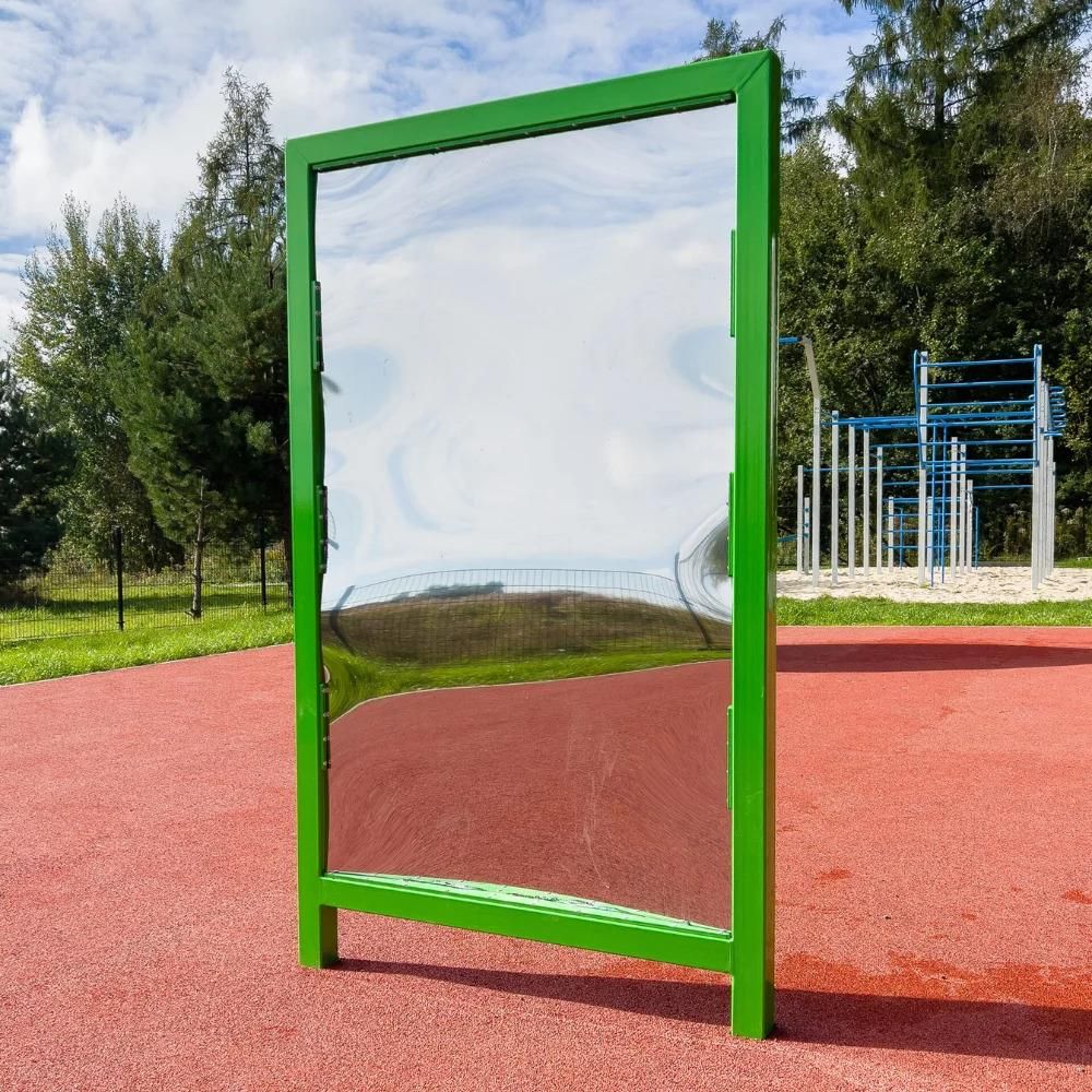 Naukowe place zabaw – Krzywe zwierciadła Krzywe zwierciadła to interaktywne narzędzie edukacyjne, które pokazuje, jak działa optyka i zniekształcenia obrazu. Składa się z luster o różnych krzywiznach, które odbijają obraz w śmieszny lub zaskakujący sposób, wywołując zaciekawienie i dając okazję do świetnej zabawy indywidualnie lub w grupie. Obserwacja zmieniającego się odbicia to czynność wspomagająca rozwój percepcji wzrokowej. Stymulowanie zmysłów oraz ich przetwarzanie są przydatne we wzmacnianiu integracji sensorycznej, dają okazję do ćwiczenia analizy i syntezy wzrokowej oraz spostrzegawczości. W trakcie fantastycznej zabawy dzieci mogą obserwować i doświadczać w praktyce, jak światło odbija się od powierzchni i jak krzywizna zmienia obraz. Pozwala to zrozumieć podstawy optyki i prawa fizyki. Ponadto mali użytkownicy uczą się, jak zmiana położenia względem lustra wpływa na odbicie. To rozwija umiejętności analizy i wyciągania wniosków. Z kolei eksperymentowanie z różnymi pozycjami i odległościami od lustra uczy twórczego podejścia do nauki i zabawy. Dzieci mogą tworzyć własne zniekształcone postacie, świetnie się przy tym bawić i integrować z grupą, co z kolei wpłynie na ich kompetencje społeczne. Zabawka świetnie nadaje się na place zabaw na świeżym powietrzu czy do ogrodu – jest odporna na zmienne warunki atmosferyczne. Można ją łączyć z innymi elementami serii Naukowe place zabaw, w dzięki temu tworzyć stymulujące zmysły i innowacyjne kąciki dla małych odkrywców. Podana cena dotyczy produktu bez montażu. Wersja z montażem jest wyceniana indywidualnie – zapytania w tej sprawie prosimy kierować na nasz adres mailowy. [ikony-produktu-opisy] Co zawiera? Krzywe zwierciadło Główne informacje Wiek: 3+ Wymiary: 100 x 6 x 175 cm Strefa bezpieczeństwa: 3,06 x 4 cm Materiał wykonania: Konstrukcja stalowa, lustro – polerowana stal nierdzewna. Główny profil konstrukcyjny: stal czarna, profil zamknięty 60x60=2 Zabezpieczenie: Konstrukcja ocynkowana, malowana proszkowo Kolor: Zielony (RAL 6018) Montaż: Kotwy ocynkowane długości 75 cm wpuszczane w ziemię i zalewane betonem. Znak CE. Lustra zgodne z normą EN 1176-1:2017 Produkt z dwustronnym zwierciadłem (blacha szlifowana). Pomysły na zabawę Odgadnij odbicie – percepcja wzrokowa, spostrzegawczość Dziecko staje przed lustrem i wykonuje śmieszne miny, a inne dzieci zgadują, co zmieniło się w odbiciu. Wesoły taniec – motoryka duża, percepcja wzrokowa Uczestnicy tańczą przed zwierciadłem, obserwując, jak ich ruchy się zniekształcają – wygrywa najzabawniejsze odbicie! Zgadnij, co się stanie – myślenie przyczynowo-skutkowe, kreatywność, percepcja wzrokowa Dziecko ustawia się w różnych pozycjach przed lustrem i przewiduje, jak zmieni się jego odbicie. Instrukcja Procedura montażu