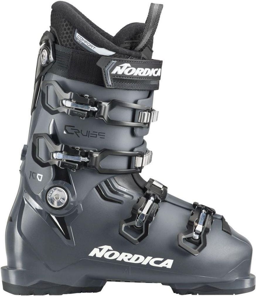 Nordica The Cruise 100 Buty narciarskie Kod produktu : 05065002243 Kolor : ANTHRACITE / BLACK / WHITE Rozmiar EU : 45,5 Mondo Point : 290 mm Szerokość : 104 mm The Cruise 100 zwiększy Twoją pewność siebie i podniesie jakość jazdy. Szersze dopasowanie buta zwiększa komfort, a jego opływowy, anatomiczny kształt zapewnia niesamowitą kontrolę i reakcję. Dzięki podbiciu z podwójną miękką klapą, "gardło" buta otwiera się wyjątkowo szeroko, dzięki czemu Cruise 100 jest niezwykle łatwy do zakładania i zdejmowania. Mankiet można również precyzyjnie dopasować, aby lepiej dopasowywał się do kształtu łydki, co zapewnia neutralną postawę, minimalizującą zmęczenie oraz poprawiającą równowagę i kontrolę. Aby jeszcze bardziej udoskonalić komfort i wydajność buta, jego wyściółkę i skorupę można łatwo dostosować. Zastosowana technologia Easy Entry Soft Flap - Miękkie plastikowe wstawki zintegrowane z gardzielą umożliwiają łatwe wchodzenie i wychodzenie z buta. I.V.C. Instep Volume Control - to czerwona wstawka umieszczona w koturnie, dobrze widoczna w okolicy pięty. Obracając tę ​​wkładkę, można szybko i łatwo dopasować dopasowanie, zmniejszając lub zwiększając objętość o +/- 4 mm. Adjustable Cuff Profile - Regulowany profil mankietu to prosty system pozwalający zwiększyć objętość mankietu. Dzięki podwójnym śrubom w górnej części pleców każdy narciarz może z łatwością dostosować dopasowanie, znajdując odpowiedni komfort.