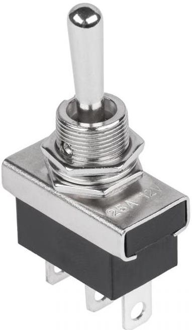 Przełącznik dźwigniowy (hebelkowy) model KN3(D)-123, przykręcany do obudowy, sposób przełączania (ON)-OFF-(ON), 3 PIN, konfiguracja styków SP3T, obciążalność prądowa styków max 25A przy 12V DC, monostabilny - po naciśnięciu wraca do stanu poprzedniego, liczba pozycji stabilnych - 1. Parametry …