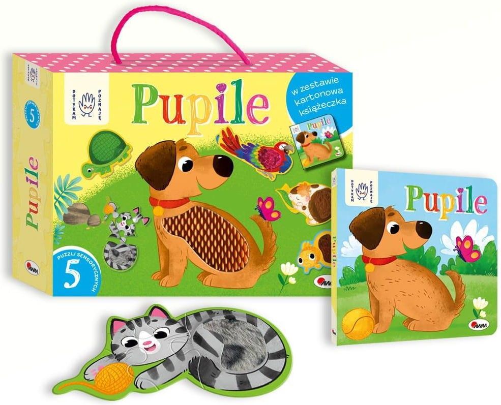 Pupile. Dotykam poznaję „Pupile. Dotykam poznaję” to wyjątkowy zestaw stworzony dla najmłodszych, łączący w sobie kolorową książeczkę oraz pięć puzzli sensorycznych. Publikacja ta, wydana w 2024 roku, jest znakomitym narzędziem, które umożliwia dzieciom eksplorację świata zwierząt poprzez zabawę. Zestaw składa się z kartonowej książeczki oraz puzzli, które przedstawiają domowe zwierzęta, co angażuje maluchy do interakcji i odkrywania nowych faktur oraz kolorów. Kluczowe elementy zestawu Zestaw ten oferuje wiele wartościowych aspektów, które wspierają rozwój dzieci. Oto kilka kluczowych elementów: wszechstronny rozwój sensoryczny: Zestaw aktywizuje zmysły wzroku i dotyku, co jest niezwykle istotne w pierwszych latach życia dziecka. pobudzanie wyobraźni: Interaktywna forma zabawy sprawia, że dzieci mogą kreatywnie myśleć oraz odkrywać świat zwierząt. rozwój ciekawości świata: Dzieci uczą się o różnych gatunkach zwierząt, co rozwija ich zainteresowanie otaczającą rzeczywistością. wzbogacenie słownictwa: Proste zagadki oraz opisy zwierząt pomagają w nauce nowych słów i pojęć. integracja sensoryczna: Dzięki różnorodnym fakturom, maluchy mają okazję badać otoczenie poprzez dotyk. Zalety książeczki Książeczka ma 10 stron, co czyni ją na tyle krótką, aby przyciągnąć uwagę maluchów, jednocześnie nie tracąc na wartości edukacyjnej. Zestaw „Pupile. Dotykam poznaję” oferuje wiele korzyści, które warto poznać: format: Książka ma wymiary 140 x 140 mm, a całość znajduje się w estetycznym pudełku z silikonową wkładką o wymiarach 280 x 210 x 65 mm. trwałość: Twarda oprawa i całokartonowe strony zapewniają długotrwałą zabawę, co jest kluczowe w przypadku publikacji dedykowanej najmłodszym. interaktywność: Zestaw łączy czytanie z zabawą, co sprzyja wspólnemu spędzaniu czasu z dzieckiem. edukacja przez zabawę: Interaktywne książki wprowadzają dzieci w świat literatury, pobudzając ich wyobraźnię i ciekawość. Zestaw „Pupile. Dotykam poznaję” to doskonały sposób na wspólne odkrywanie świata zwierząt oraz poznawanie nowych faktur. To nie tylko świetna zabawa, ale także ważna inwestycja w rozwój poznawczy i emocjonalny malucha, która pomoże mu lepiej zrozumieć otoczenie.
