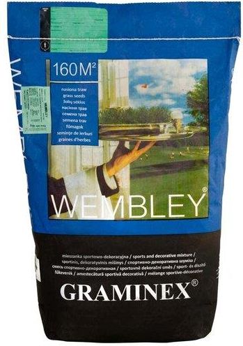 Mieszanka traw Wembley, 4 kg, marki Graminex.Mieszanka traw do intensywnego użytkowania.Polecana na boiska sportowe, tereny rekreacyjne, place zabaw itp. Szczególnie odporna na deptanie.Tworzy wytrzymały, gęsty trawnik.Opakowanie wystarcza na 160 m2.CechyGatunek: trawniki sportoweObszar zagospodarowania: założenie nowego trawnika Zawartość wystarczy na: 160m2
